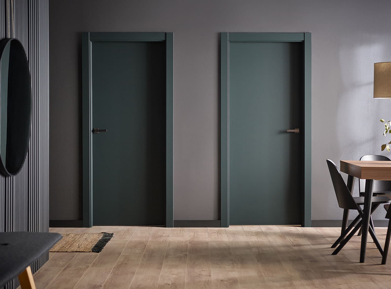Wykończenie Uni Mat Plus zabezpiecza drzwi przed zarysowaniem i uszkodzeniem. Matowa powierzchnia jest jedwabista w dotyku, a jej struktura powoduje, że odciski palców nie są widoczne nawet na ciemnych drzwiach.