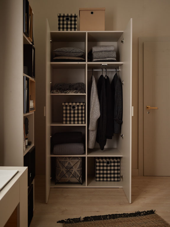 - To increase storage space, you can add a 206 cm high 4-door closet side rack to the side of the closet.