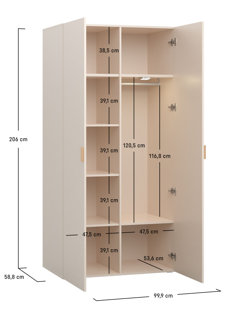 width: 99.9 cmheight: 206 cmDepth: 56.7 cm