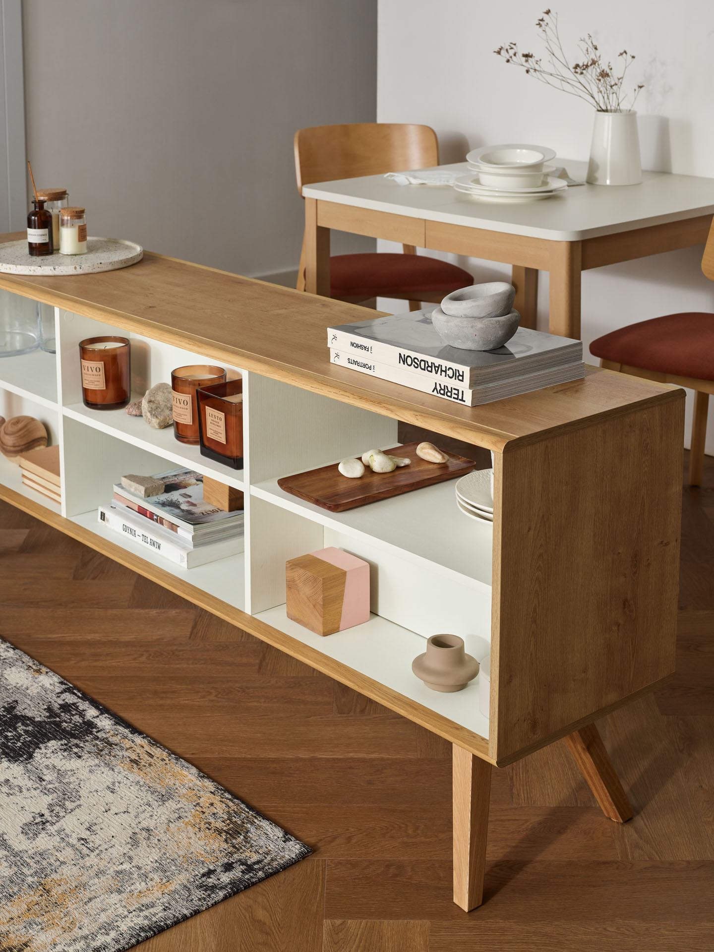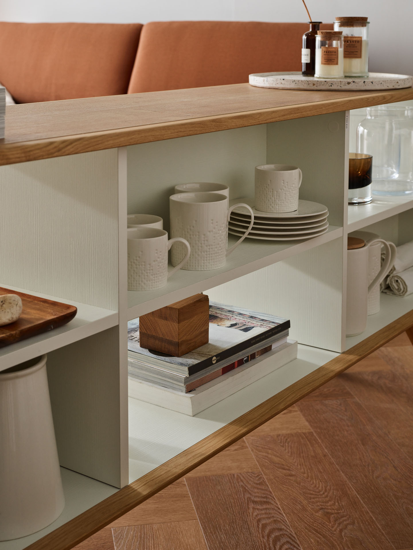 Practical, light in form, the Nature collection chest of drawers will provide space for storing a variety of items: from books to private trinkets to plant pots. With access to the shelves on both sides, you can use the dresser in many ways.
