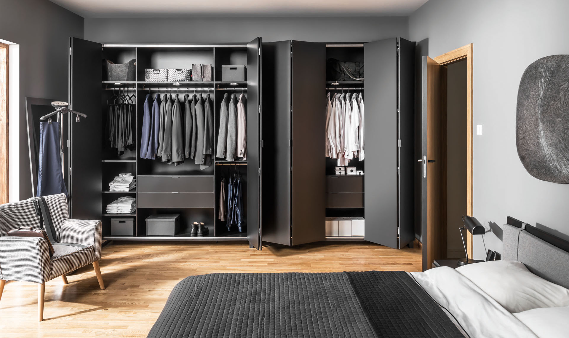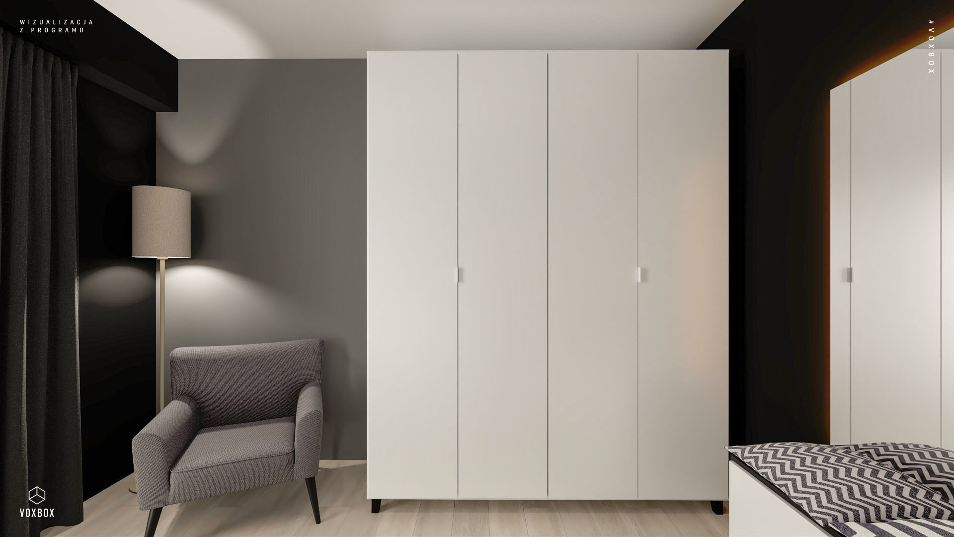 - This is a real closet, enclosed in one piece of furniture. It was equipped with folding doors, which on the one hand are a space-saver in the bedroom, on the other hand allow access to the entire contents of the closet. In addition, the door is equipped with Silent System - especially useful in the bedroom, where peace and quiet are valued most.