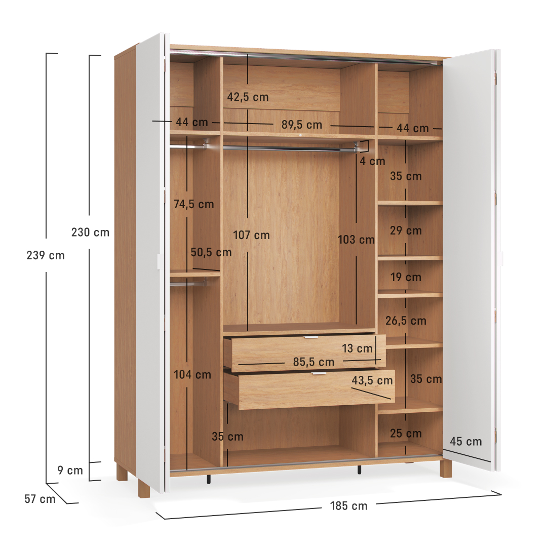 width: 185 cmheight: 229.5 cmDepth: 57 cm