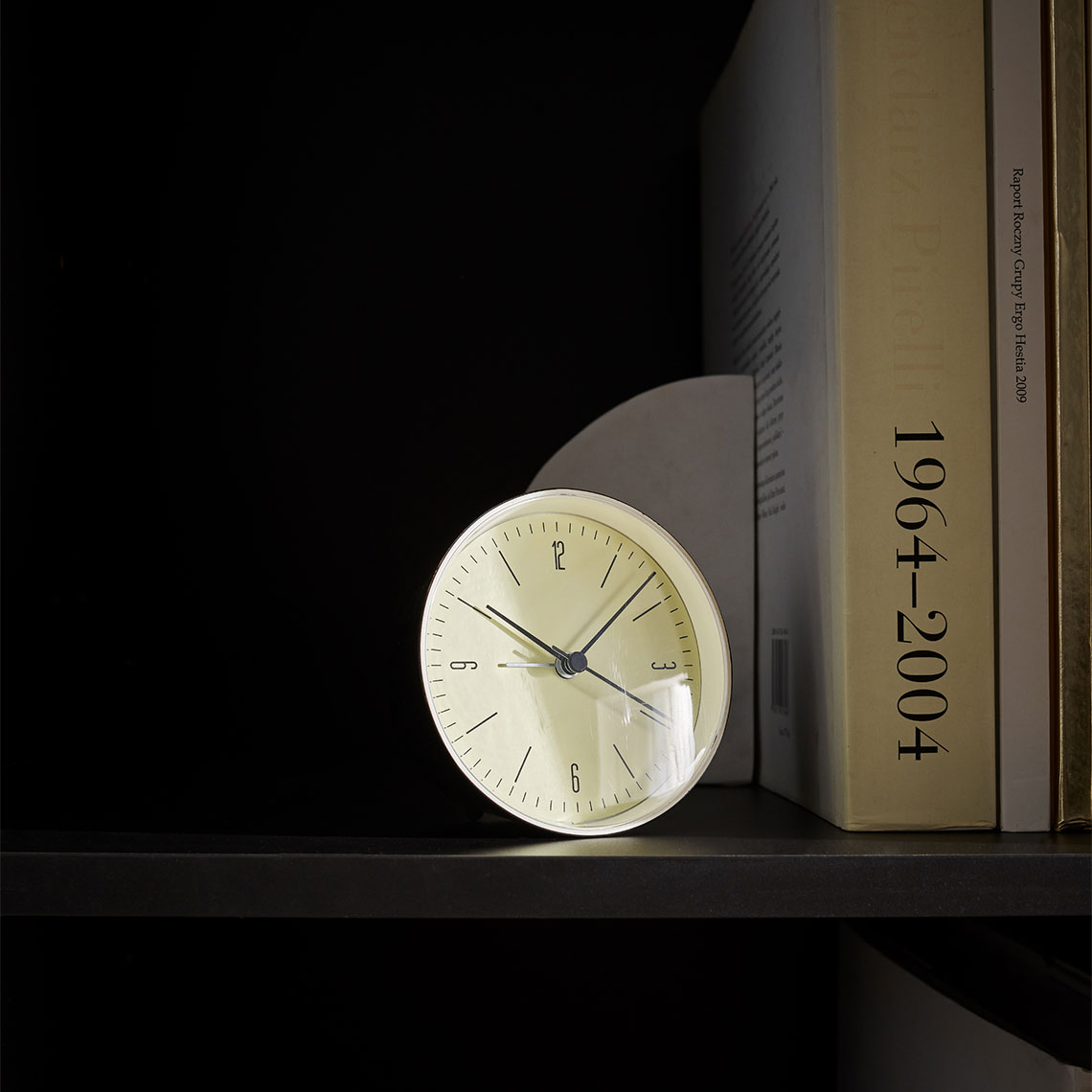 The Dru alarm clock is distinguished by its simple, geometric form.