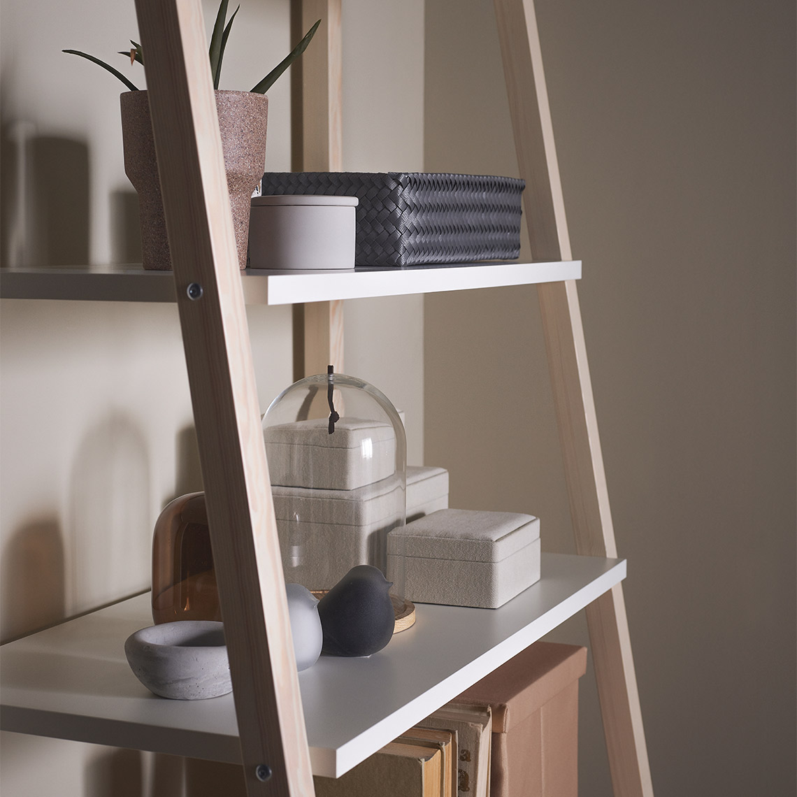 - You can display your favorite souvenirs and ornaments and store useful items on the tall, open bookcase. The furniture can also serve as a bookcase or a base for plant pots. Under the lowest shelf there is free space, which can be used as desired.