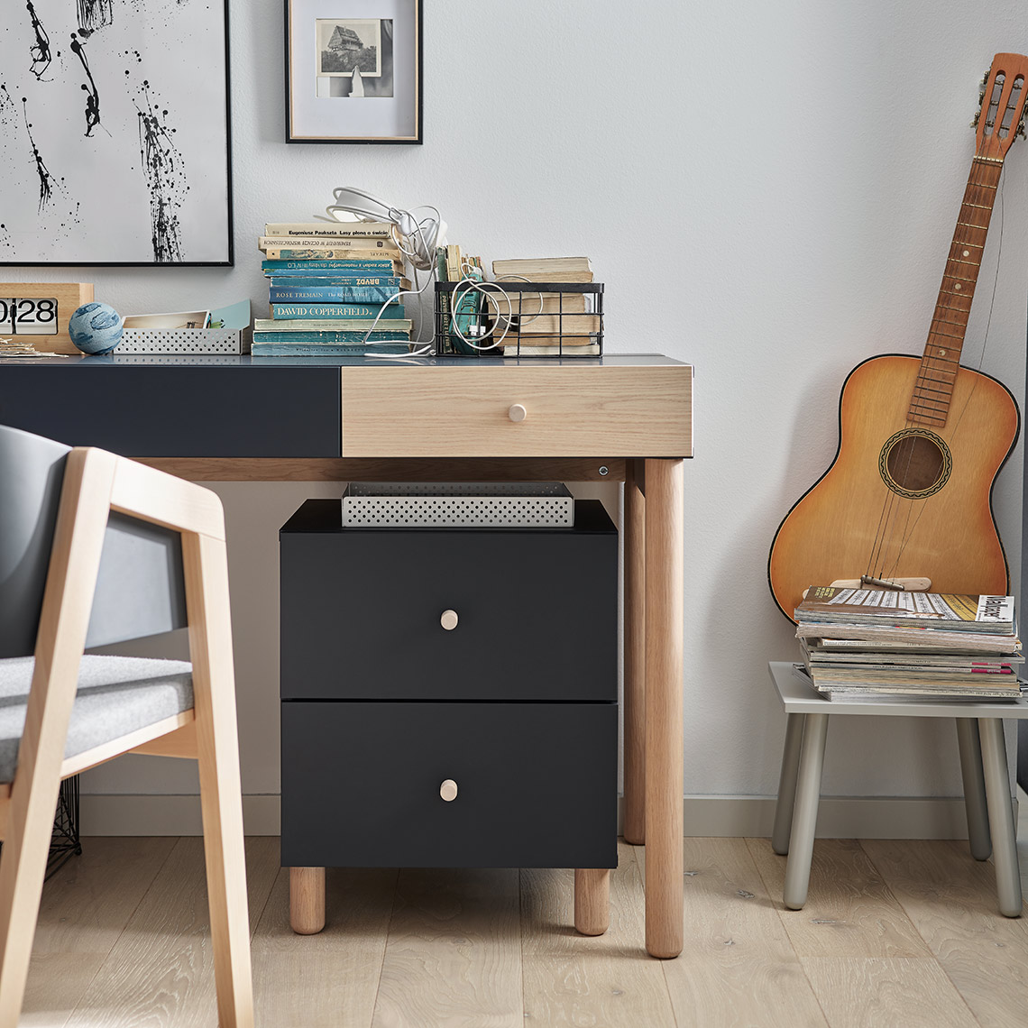 A small but roomy desk pedestal will accommodate documents, writing kit and utensils you need while studying or working. Thanks to the possibilities of the Creative system, you will choose the appearance and characteristics of the furniture according to your needs.
