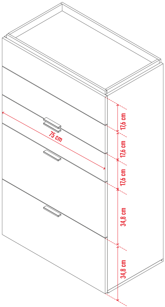 - Three smaller and two larger drawers - their asymmetrical arrangement will make it easier to sort your things. The height of the shallow drawers is 17,6 cm, and the deep ones - 34,8 cm.