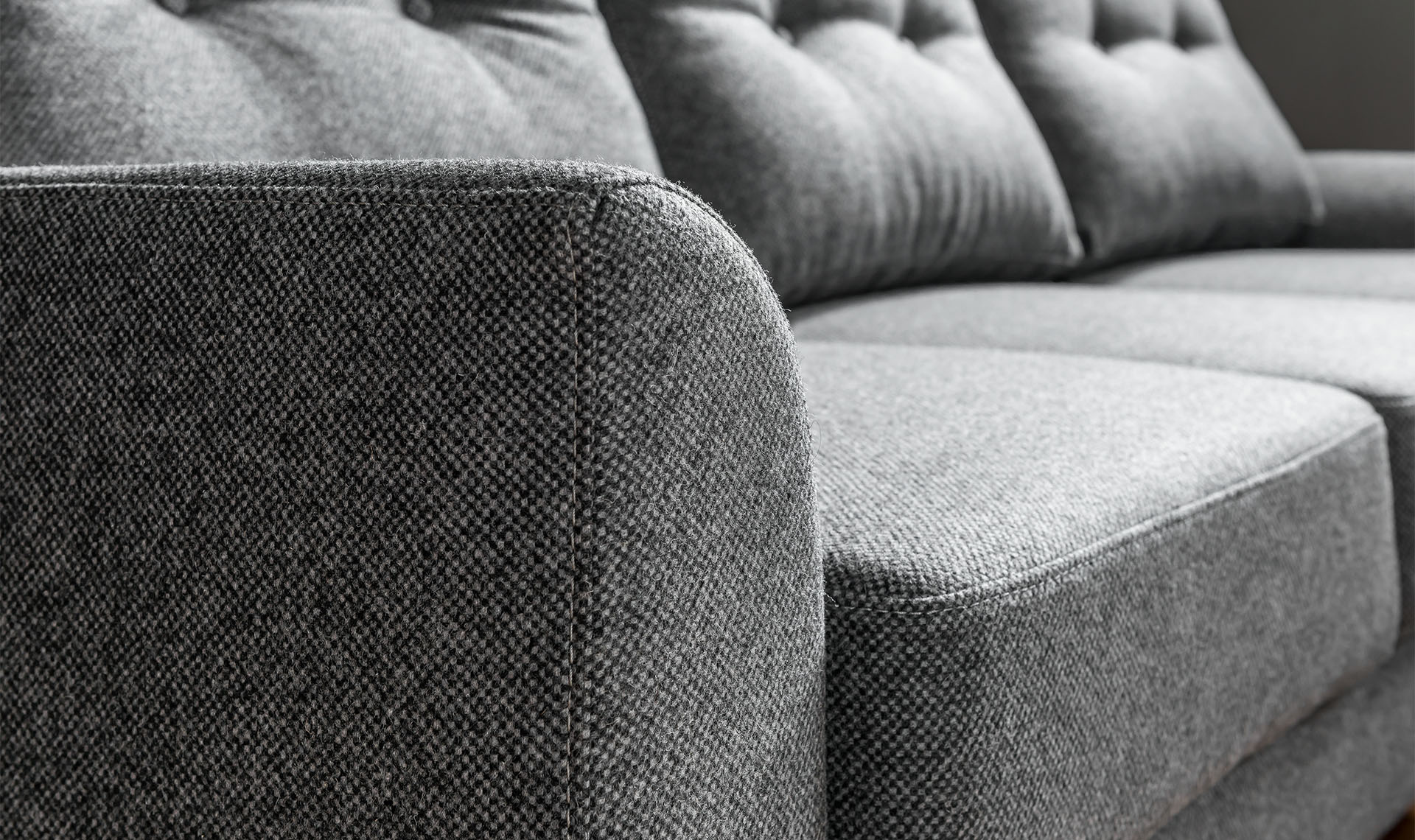 - The corner sofa will provide a comfortable seat for 3 people. Independent backrest cushions have quilting, which give the furniture an elegant character.