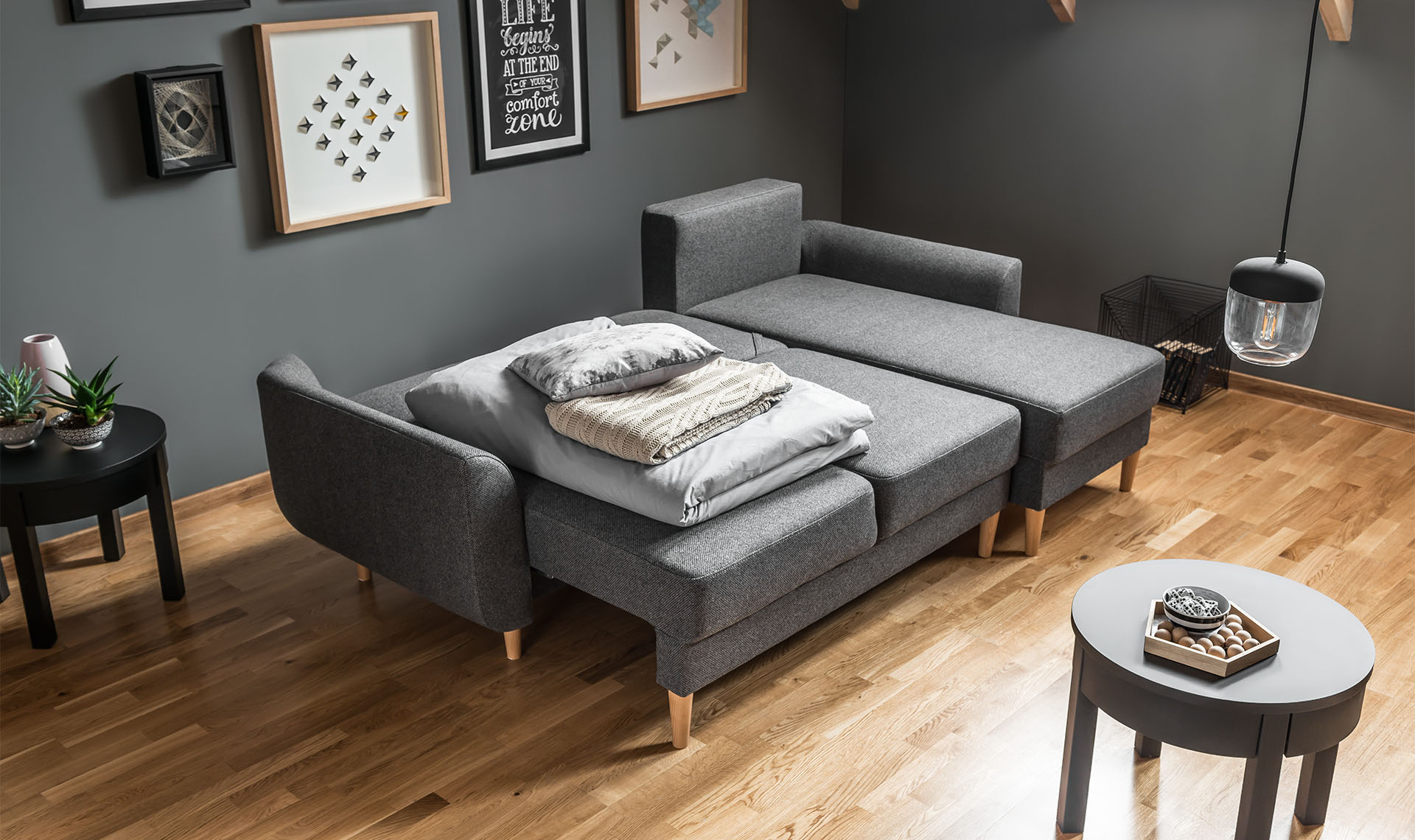 - The assisted unfolding system makes it easy to prepare for sleep. To unfold the corner, just slide the seat forward and lay down the backrest.