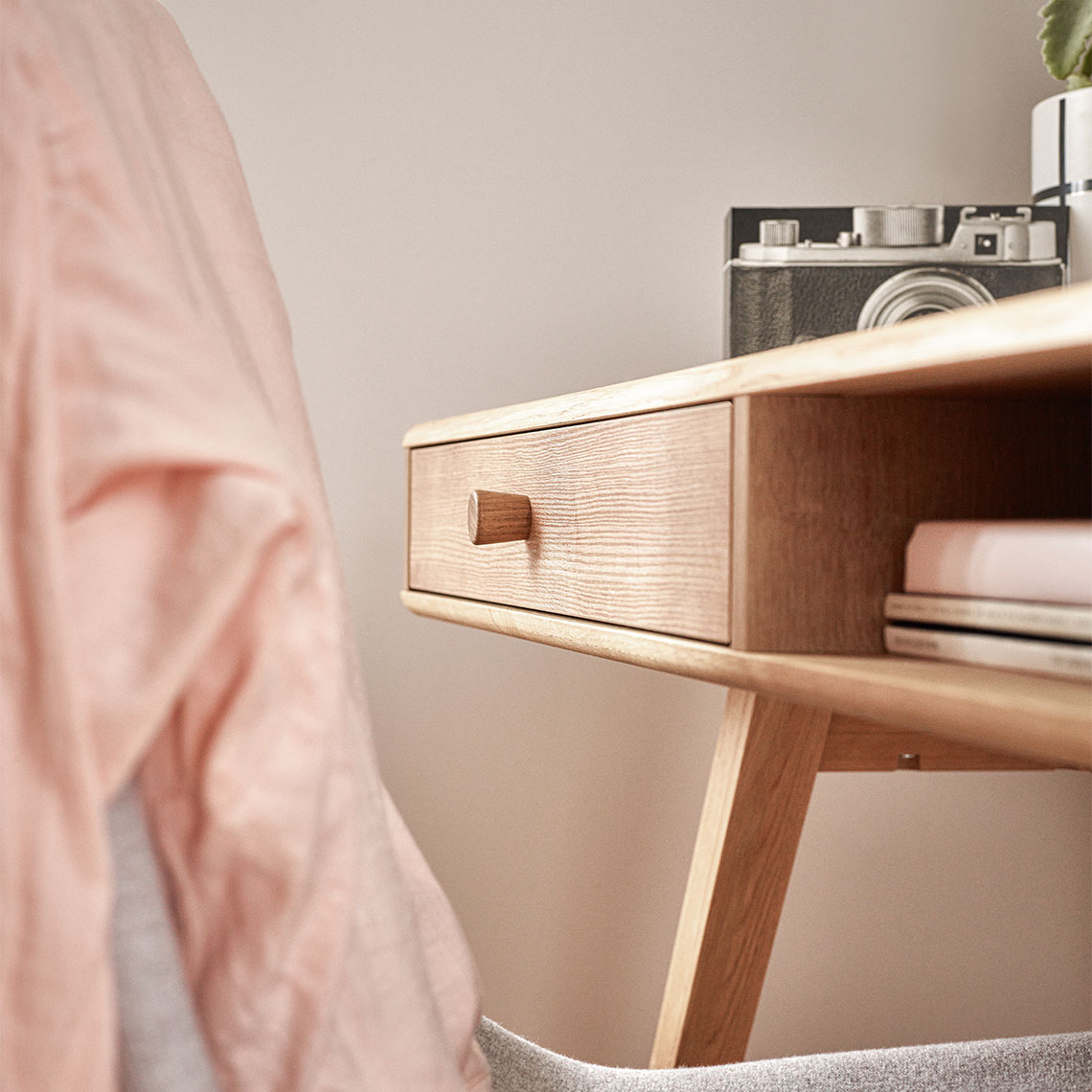 - Legs, drawer handle and front horizontal edges: solid oak wood.