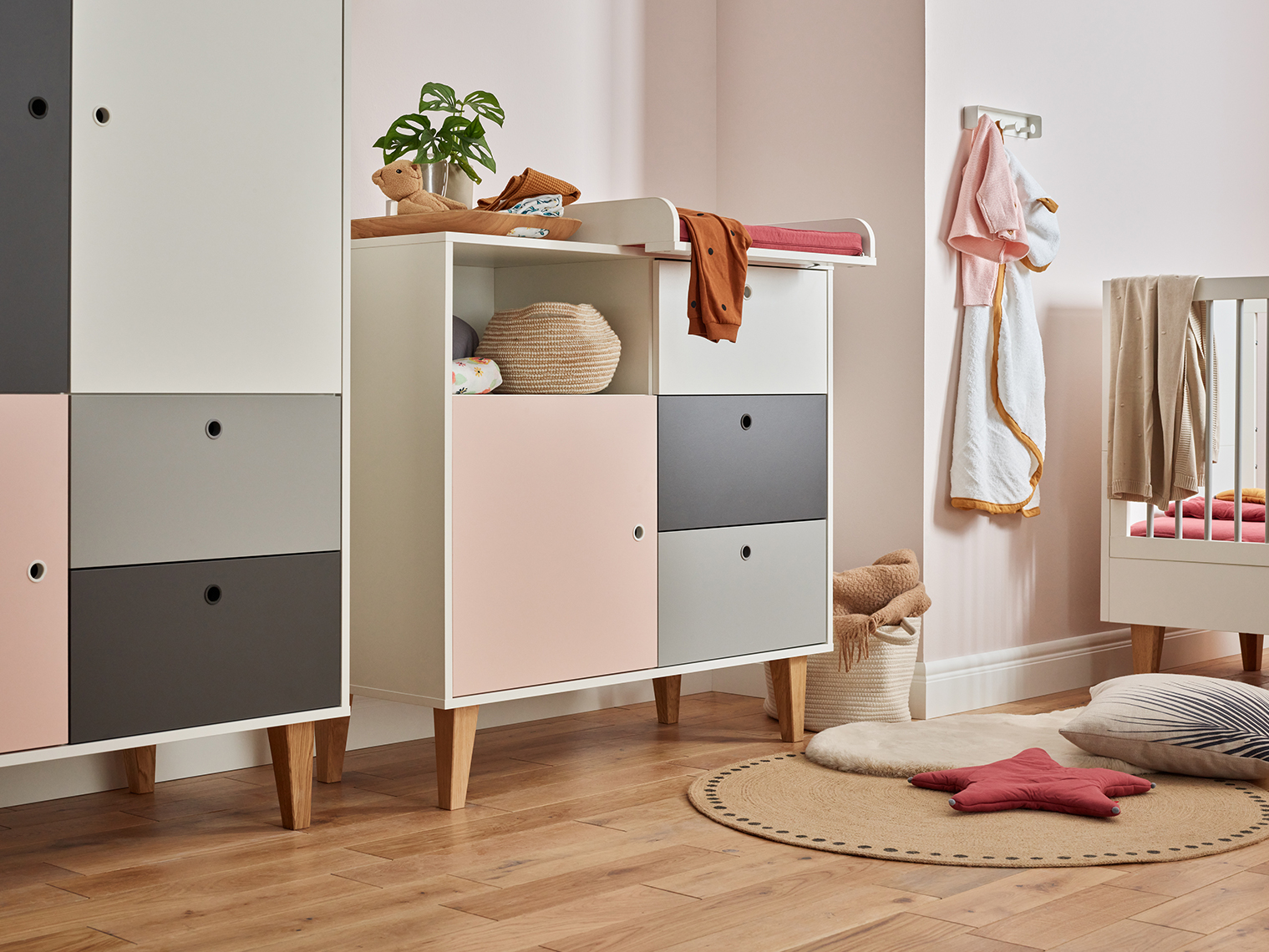 - At the stage of purchase, you decide on the color of the cabinet front. There are 6 options to choose from: saffron, blue, red, oak, black and pink. This part of the dresser can be bought later and conveniently replaced when you want to refresh the color accent in the room.