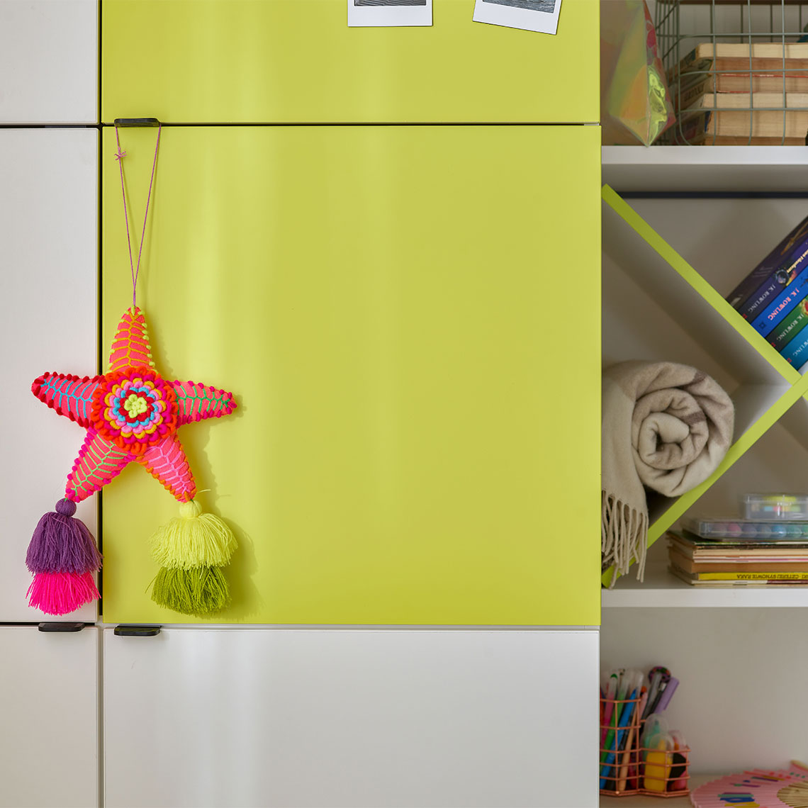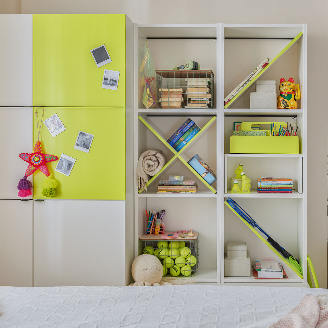 Thanks to the neon yellow overlay, you will refresh the interior design and gain a distinctive base for magnets and notes.