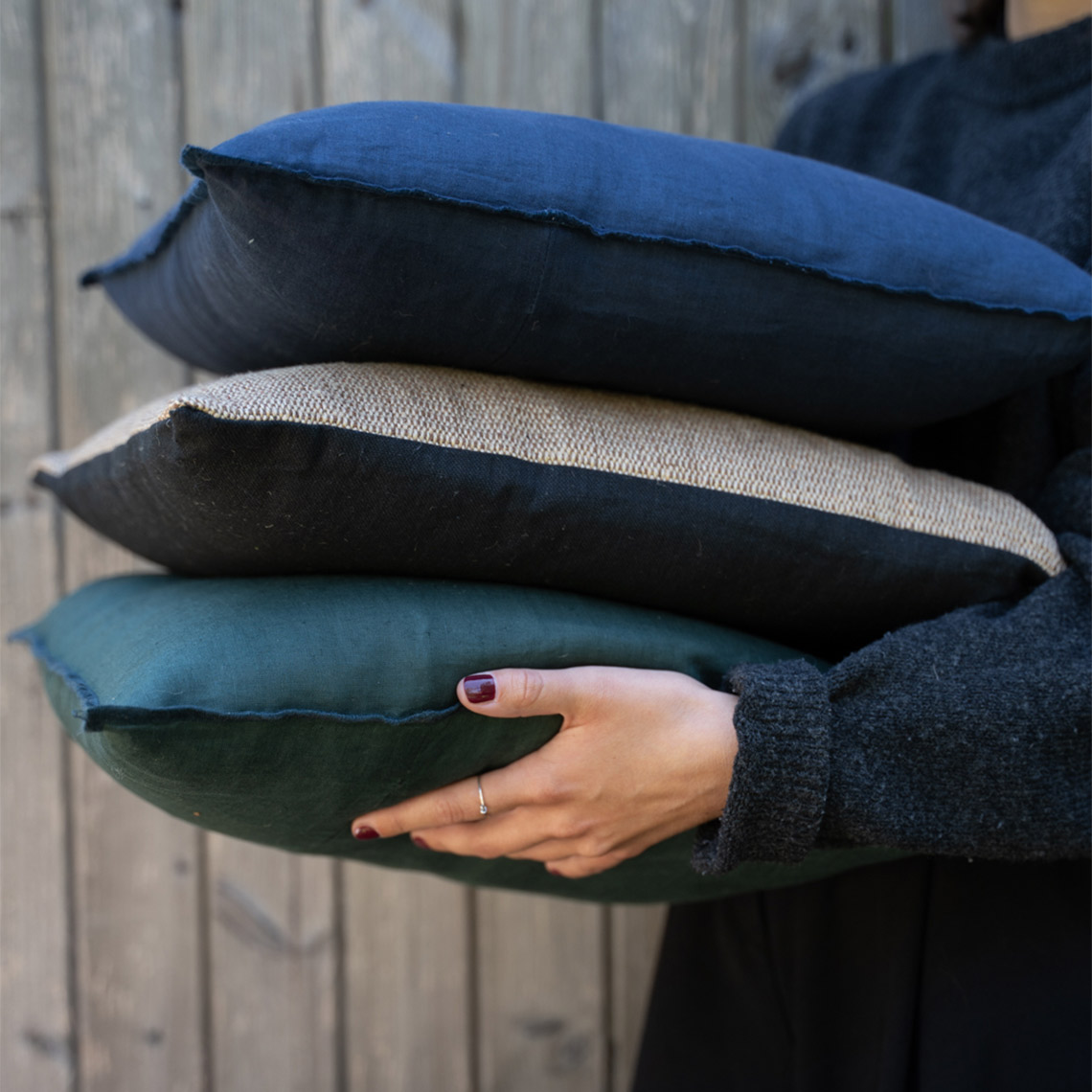 Linen pillows come in 43x43 cm, 43x60 cm and 60x60 cm sizes.