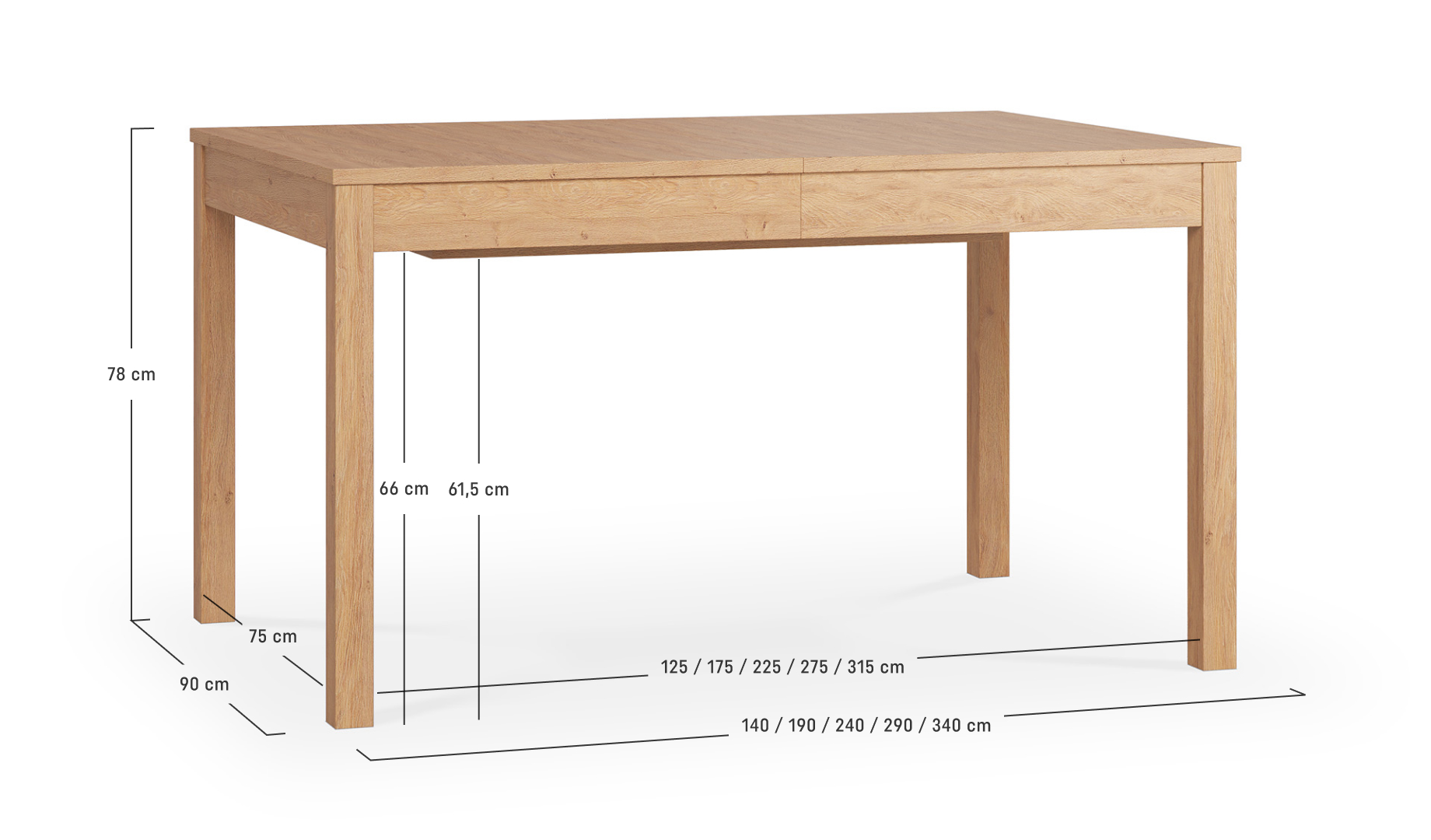 - For everyday use, without taking up much space, it can function even in the smallest rooms (when folded, its size is 140x90 cm. But when you need a table with a larger area, you can unfold the top successively to 190, 240, 290 and 340cm!