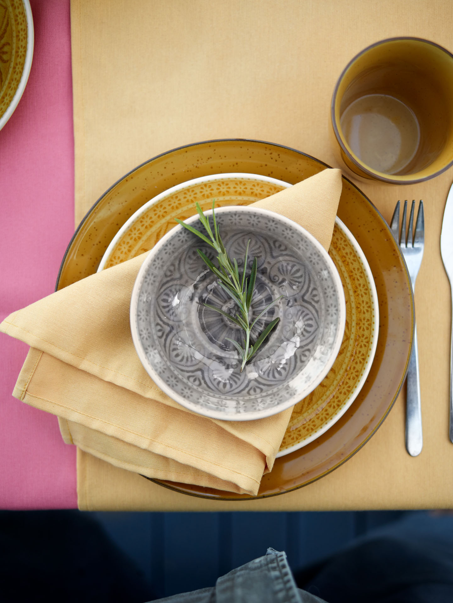 In the Uniline series you will find placemats and a runner in mustard and terracotta colors.