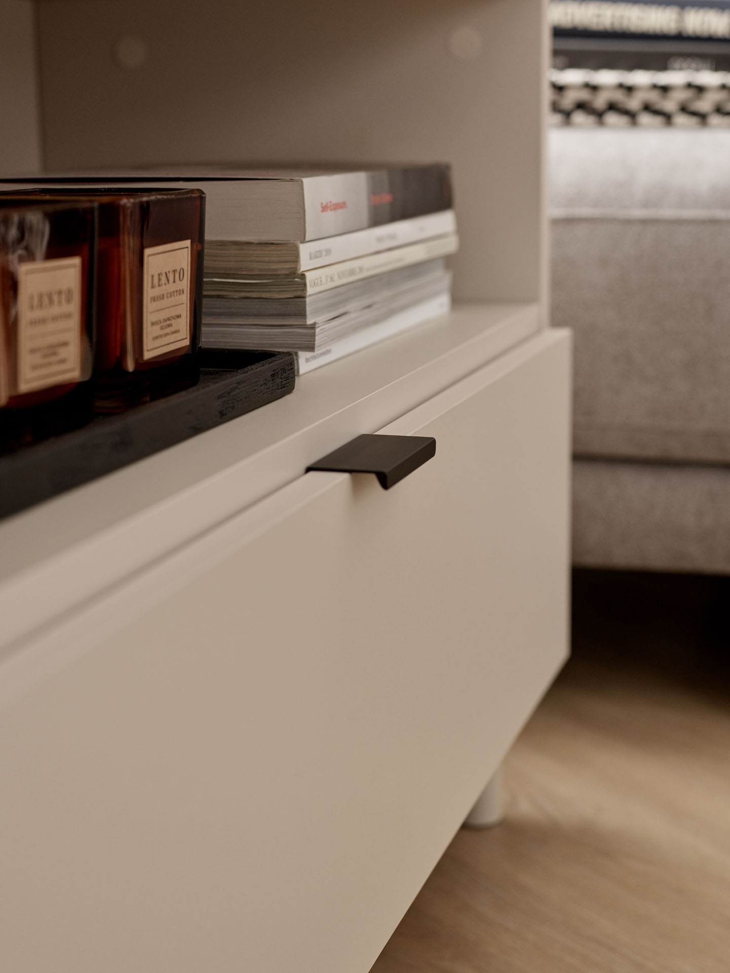 - Define your dream piece of furniture by choosing the color of the body, fronts, handles and type of legs. The interior of the cabinet will be made exactly in the color you selected for the body.
