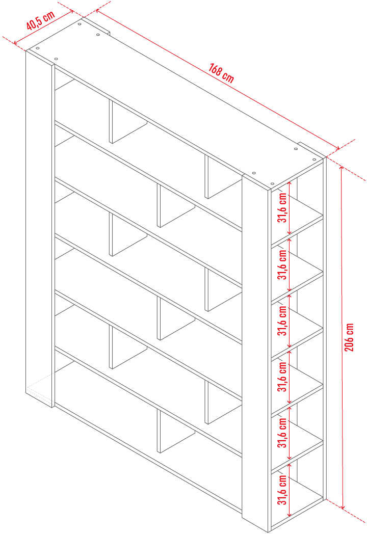- Strong shelves can easily withstand the weight of even the thickest book, and thanks to the large dimensions of the bookcase you can fit a lot of them there.
