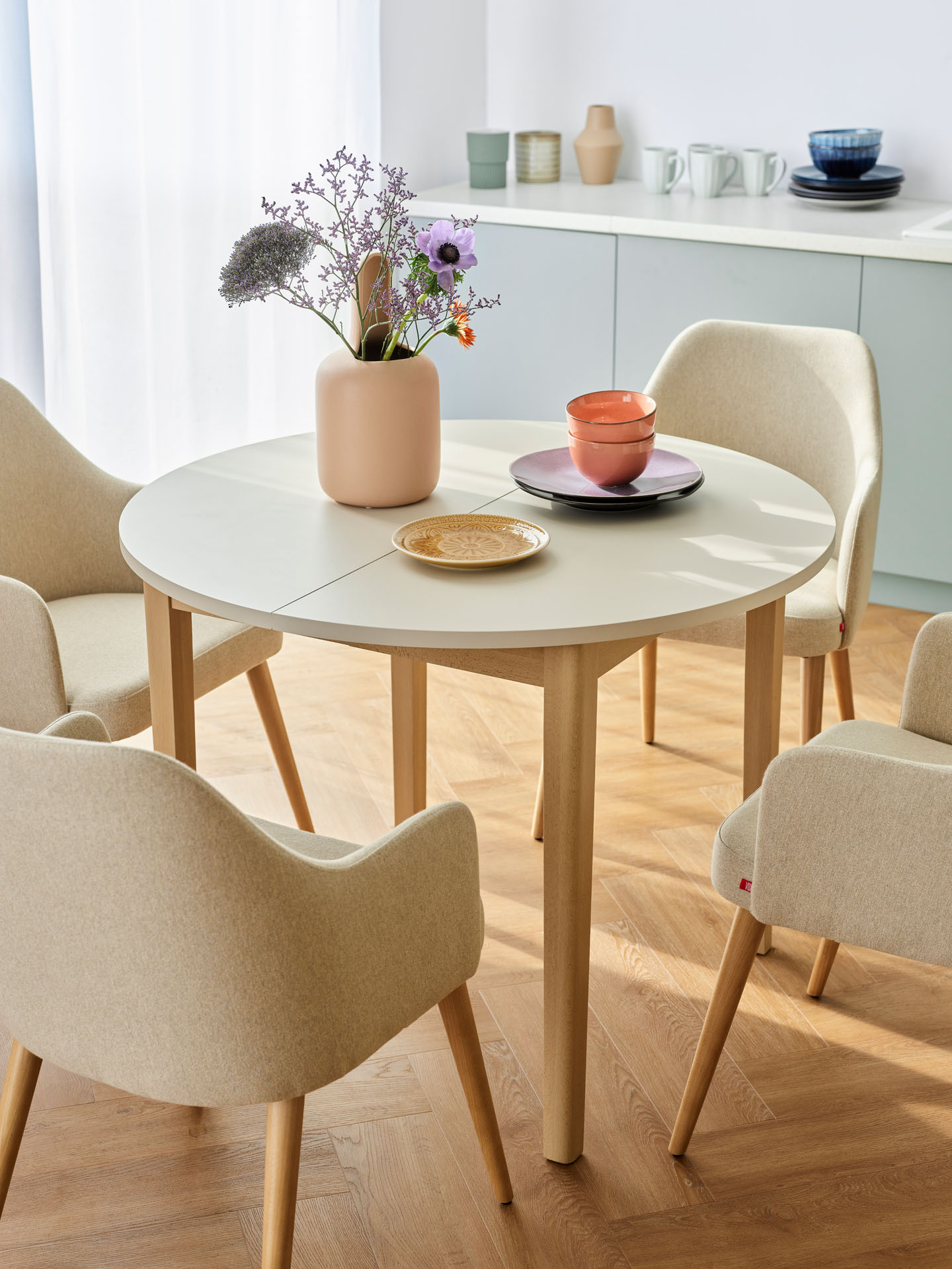 It perfectly blends with decorative dishes in other shapes.