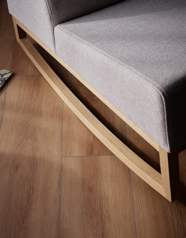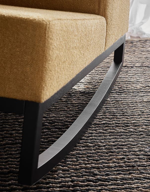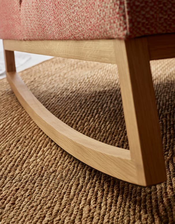 Piękną formę fotela i podnóżka możesz ubrać w dowolną tkaninę. A szlachetne płozy z drewna w kolorze dębowym lub czarnym pozwolą Ci dopasować wygląd mebla do stylu Twojego wnętrza.