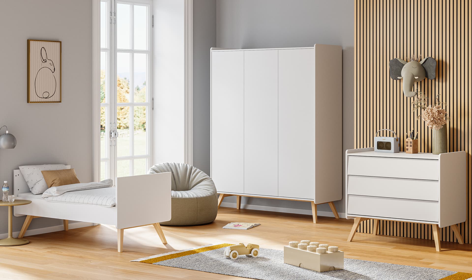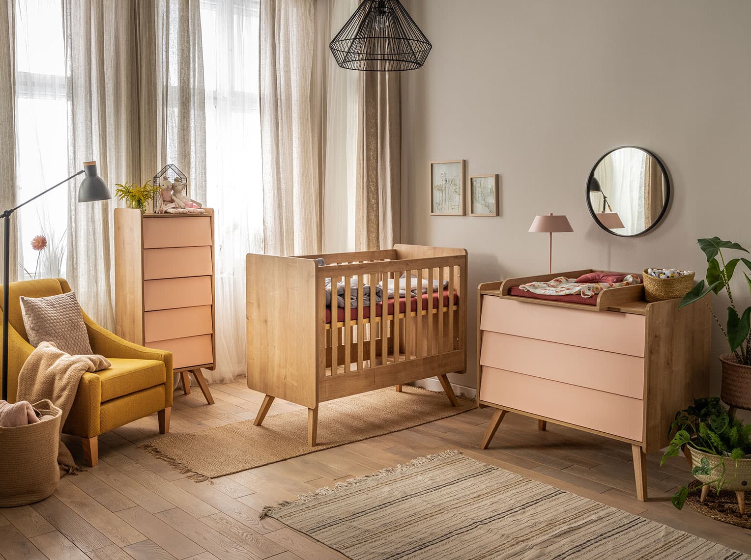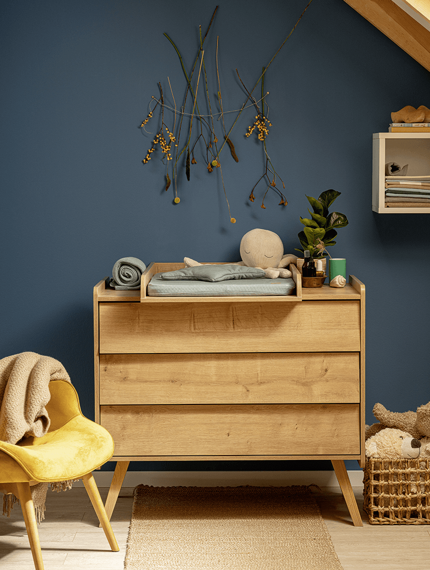 Kolekcja Vintage pozwoli zbudować praktyczny i stylowy kącik dla malucha. Oryginalne meble łączące naturalne drewno z pastelowymi kolorami doskonale odnajdą się także w dorosłej przestrzeni. Dzięki temu wraz z pojawieniem się nowego członka rodziny wnętrze zachowa swój klimat i charakter. Solidne bryły mebli pomieszczą wiele, a skośne drewniane nóżki ułatwią utrzymanie porządku w pokoju.