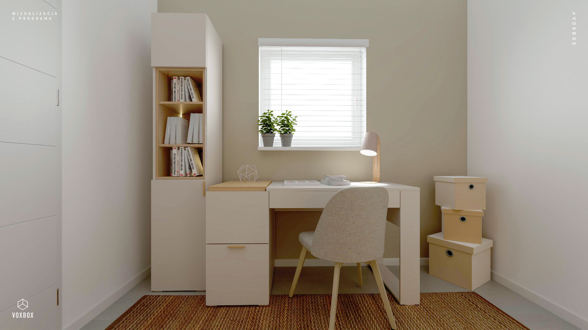 - Korzystając z programu VOXBOX, można sprawdzić, jak biurko z przybornikiem będzie prezentować się w mieszkaniu.