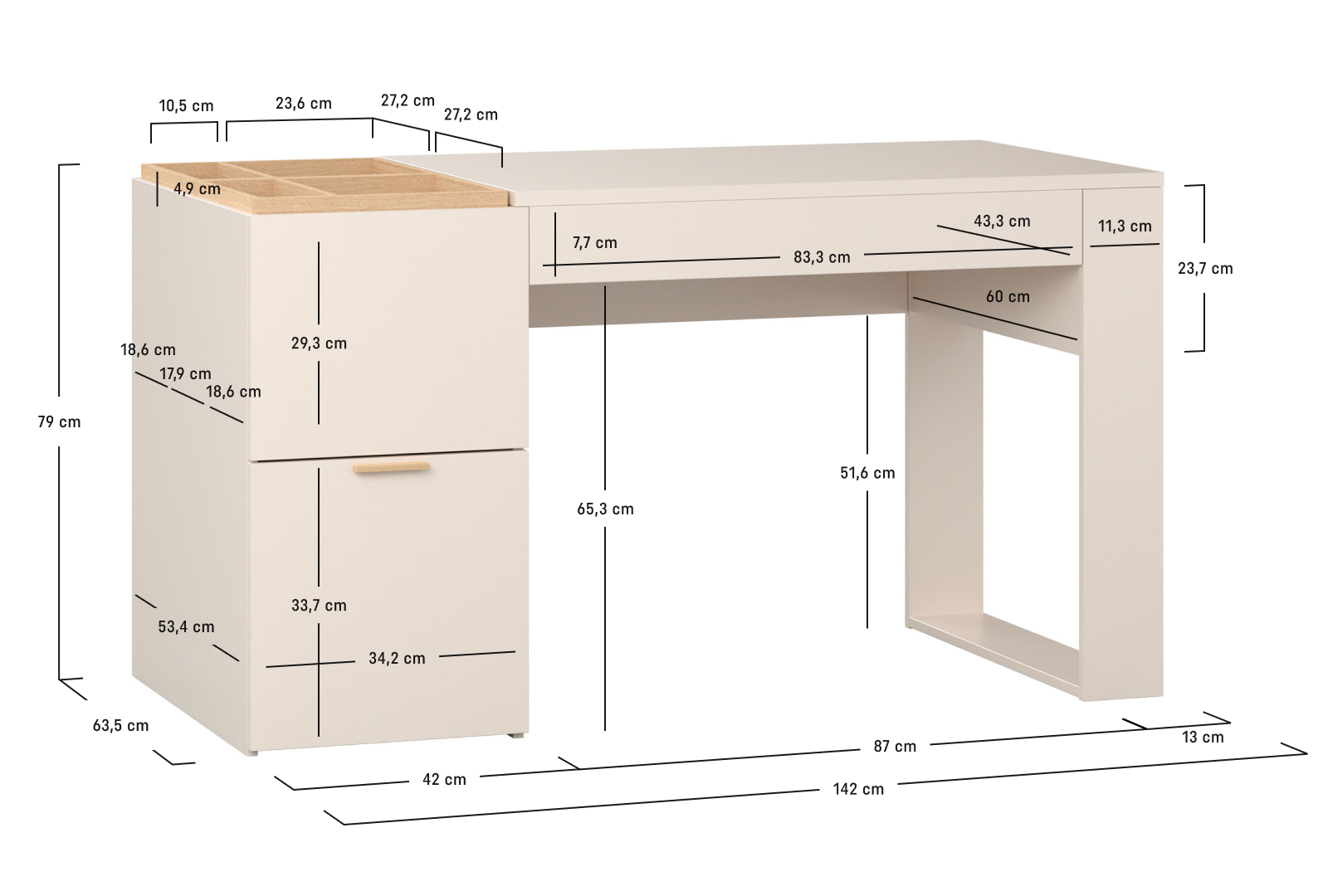- Korpus i front biurka mają odcień piaskowego beżu.