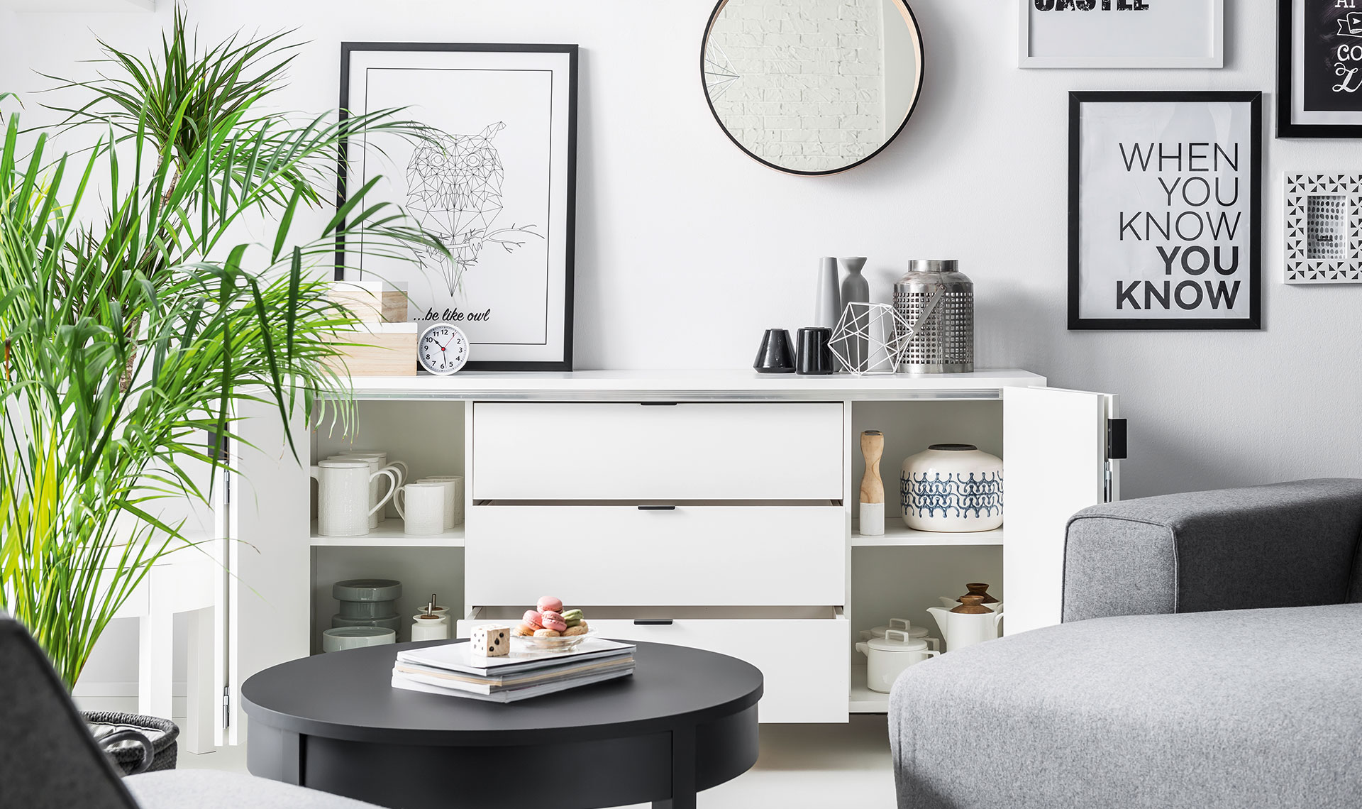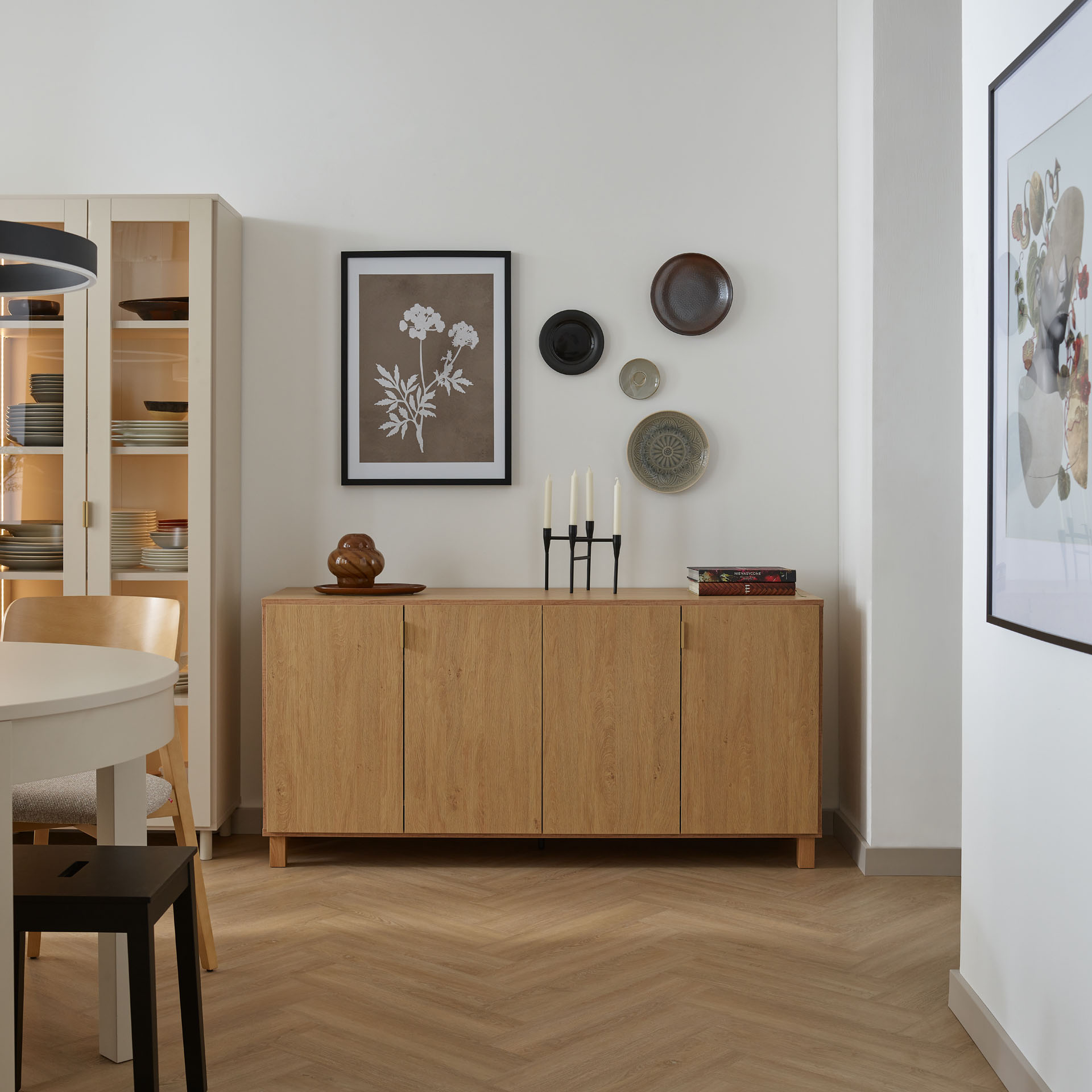 - Bufet może pełnić rolę wysokiej szafki RTV – postawiony na nim telewizor znajdzie się na wysokości stołu, co pozwoli na komfortowe oglądanie ulubionych programów.