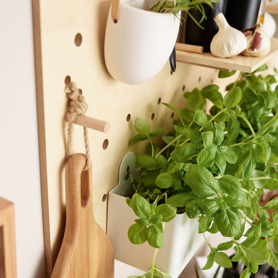 - W ofercie dostępny jest także mniejszy pojemnik. Do tablicy można dokupić również filcowe kieszenie i drewniane kołki pełniące funkcję wieszaków, aby jeszcze lepiej wykorzystać powierzchnię panelu.