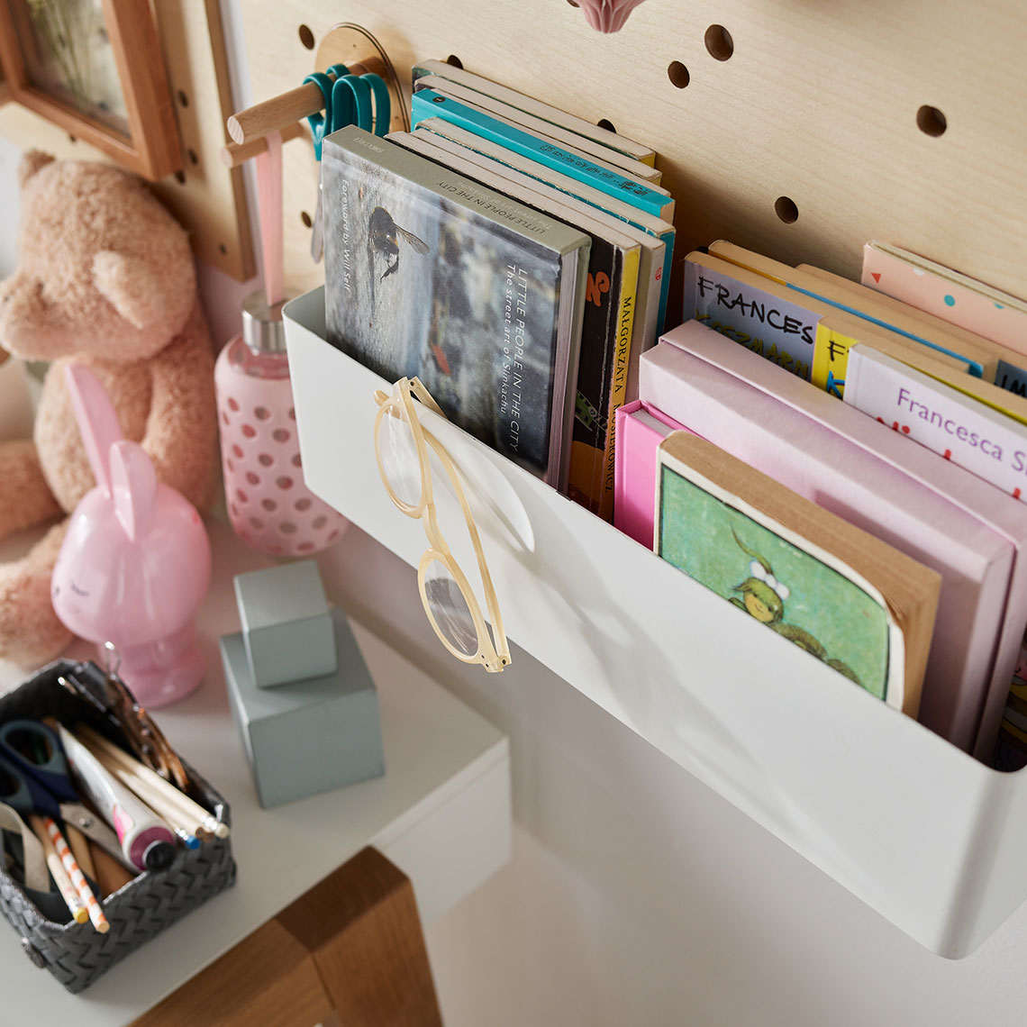 - Pojemnik łatwo przymocujesz do tablicy przy pomocy śrub znajdujących się w zestawie. Dzięki stabilnemu i bezpiecznemu mocowaniu możesz przechowywać w nim również cięższe przedmioty, takie jak książki czy doniczki z roślinami.