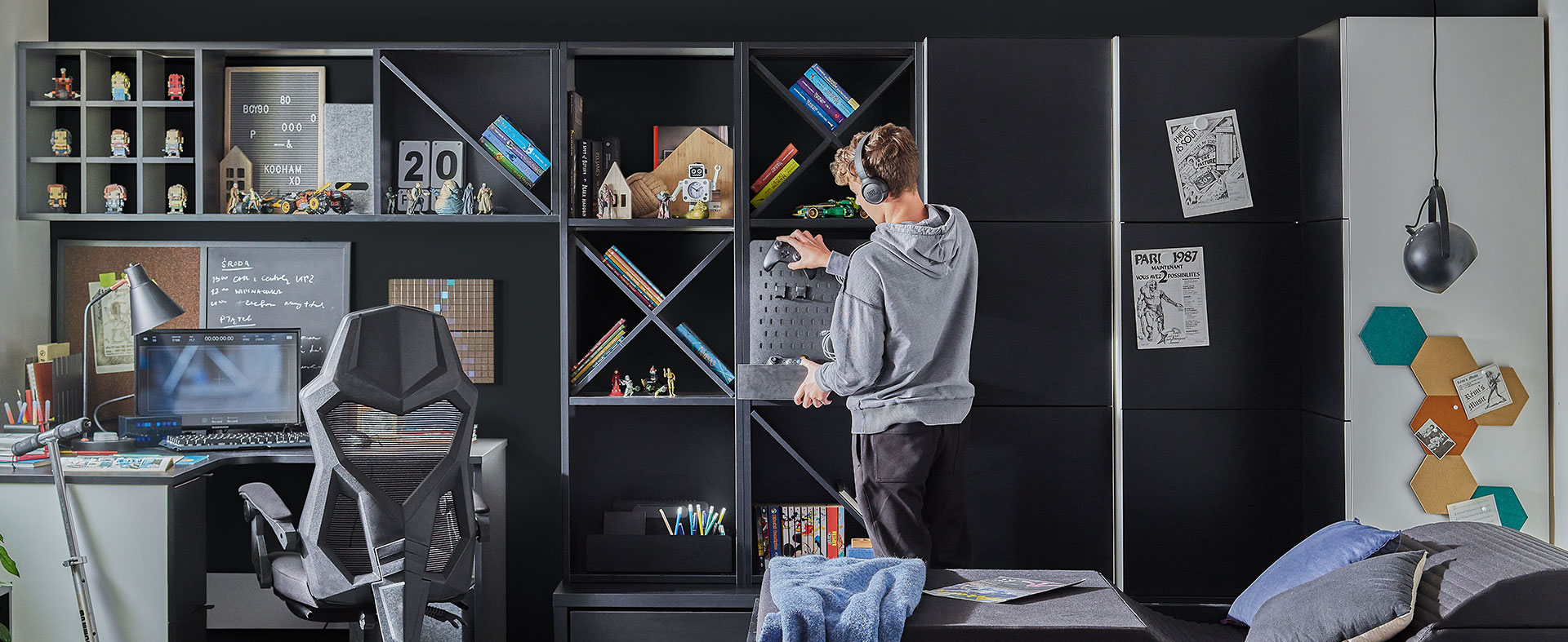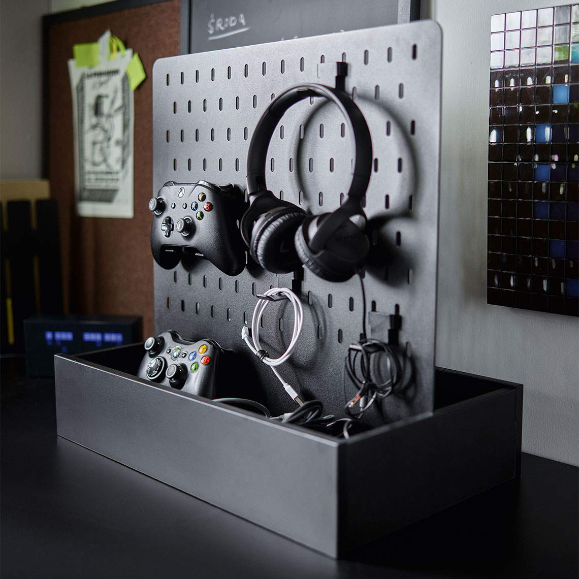 Trudno znaleźć stałe miejsce dla ulubionych słuchawek, padów do konsoli czy licznych kabli do ładowania sprzętów elektronicznych. Problem ich organizacji rozwiązuje dwustronny ekspozytor z kolekcji Young Users.