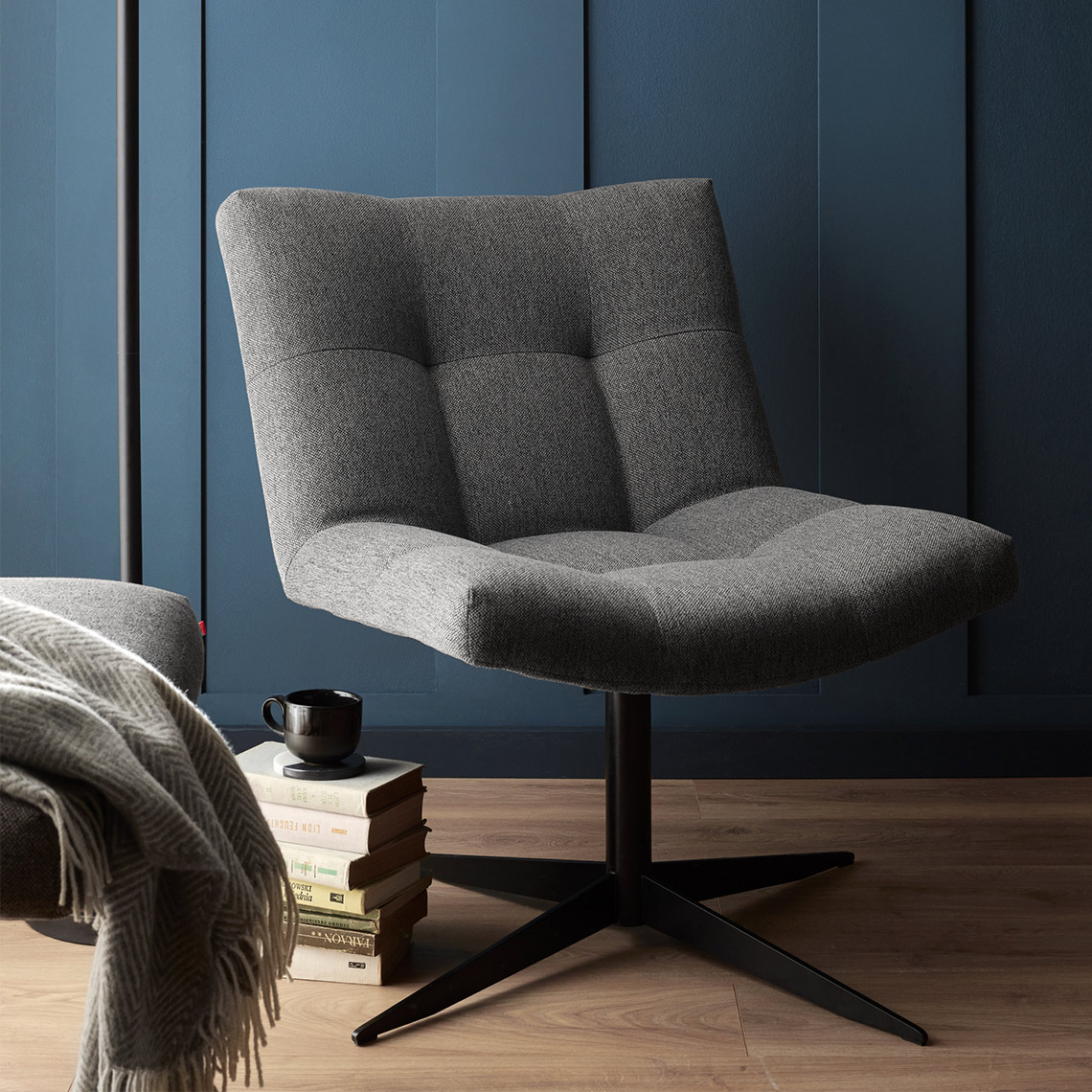 - Jeśli marzysz o miejscu, w którym przez wiele godzin oddasz się rozmyślaniom, czytaniu książek czy słuchaniu muzyki, fotel Banco jest idealnym wyborem dla Ciebie. Smukła, obrotowa podstawa sprawia, że mebel ten nie przytłoczy niewielkiej przestrzeni. A podnóżek? Któż by go nie chciał, szczególnie na długie jesienne wieczory.