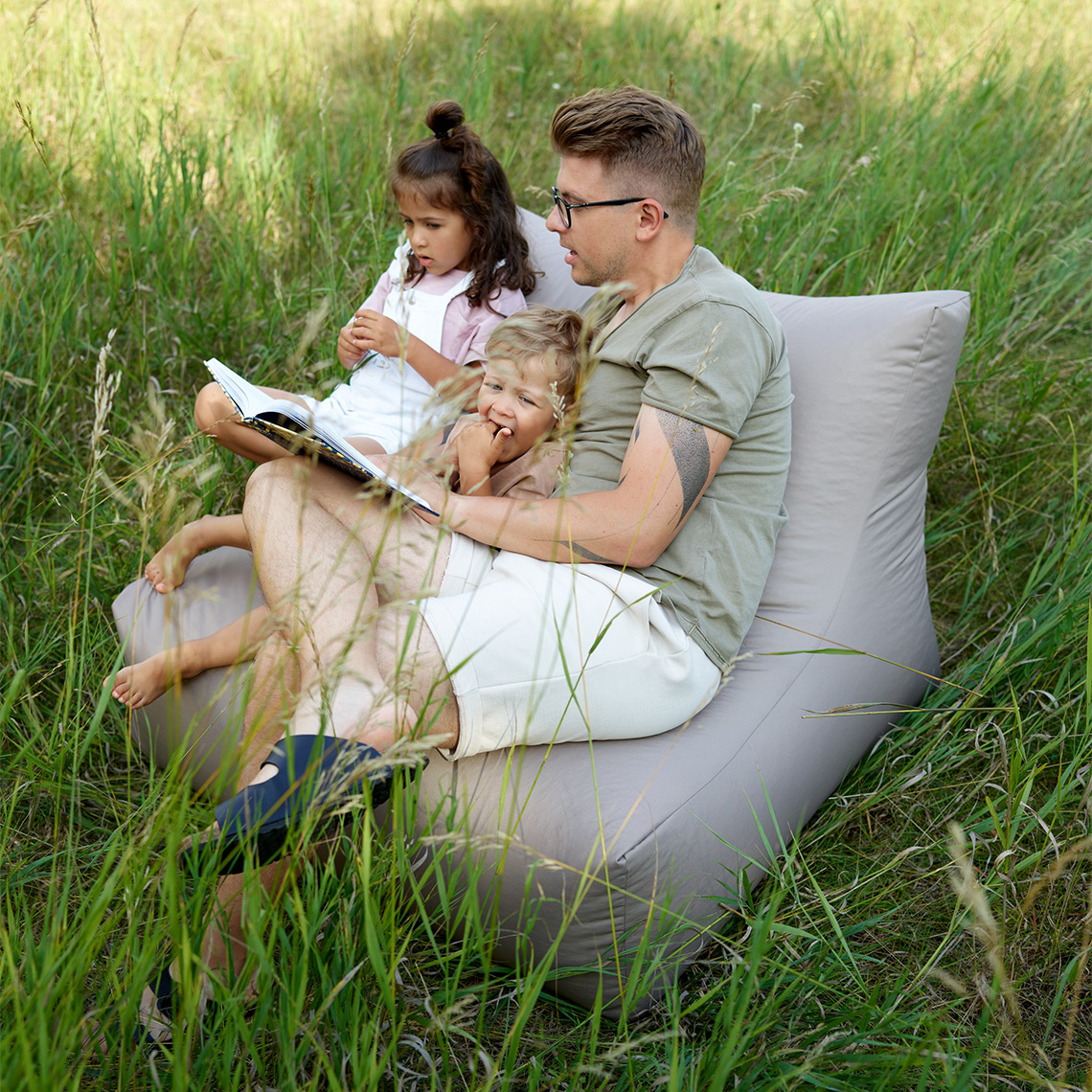 - Fotel został wypełniony sypkim granulatem. Dzięki temu jest lekki i można go swobodnie przenosić.