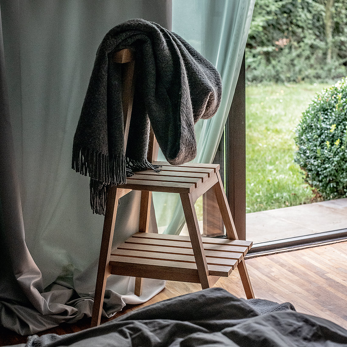 - Wyjątkowa konstrukcja kamerdynera przypomina dwustopniowy podest z oparciem. Dzięki temu, że wykonano go z litego drewna, jest szczególnie wytrzymały i solidny. Będzie Ci więc towarzyszyć przez wiele lat.