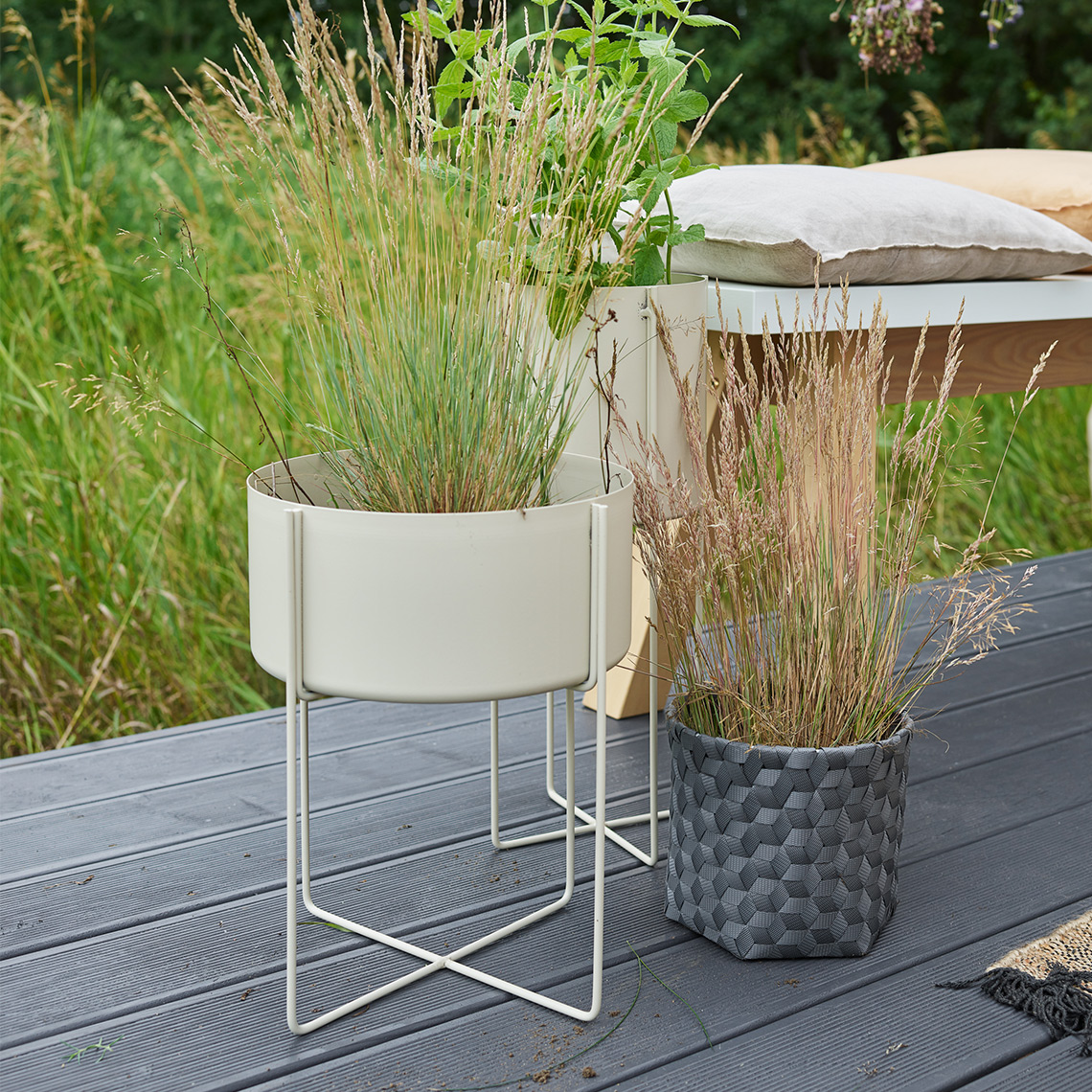 Kolekcja pojemników marki Handed By to propozycja organizerów oraz osłon na donice wykonana w stylistyce imitującej wyplatanie z trawy morskiej, przy jednoczesnym zachowaniu trwałości użytkowania dzięki użyciu wytrzymałych materiałów.