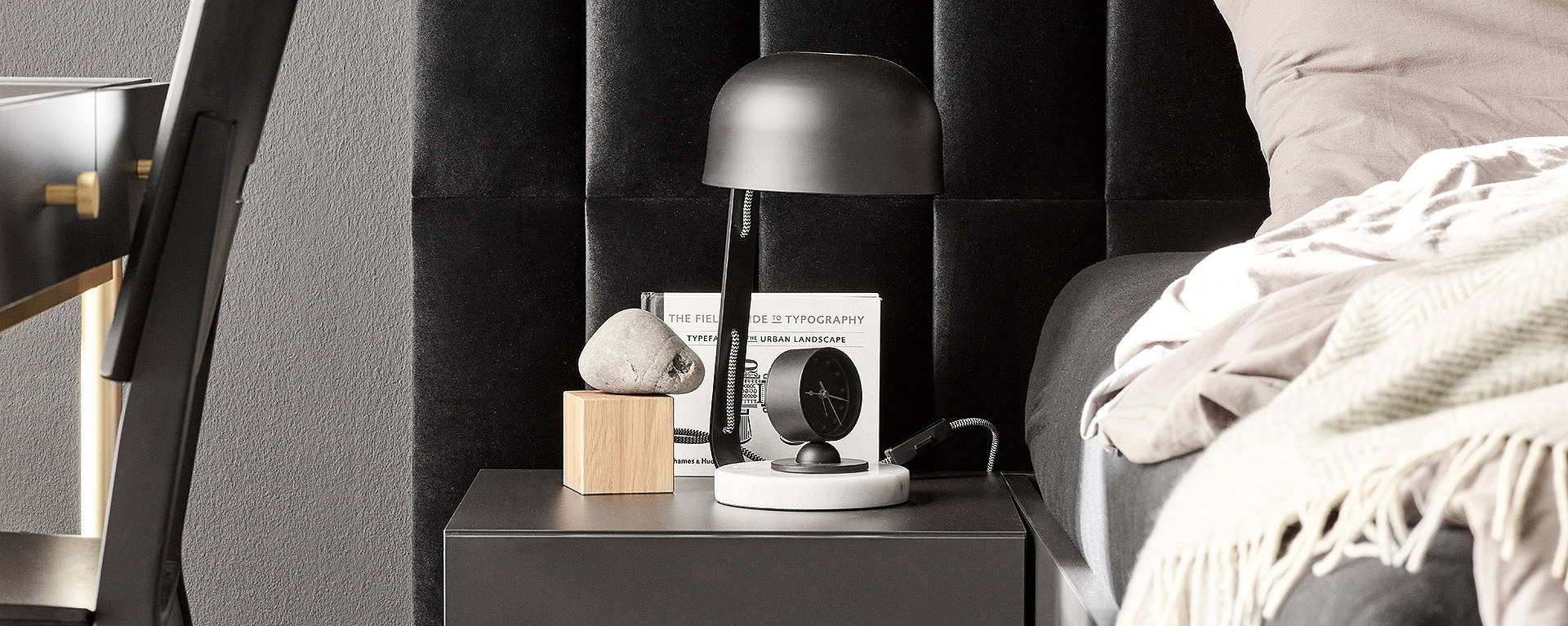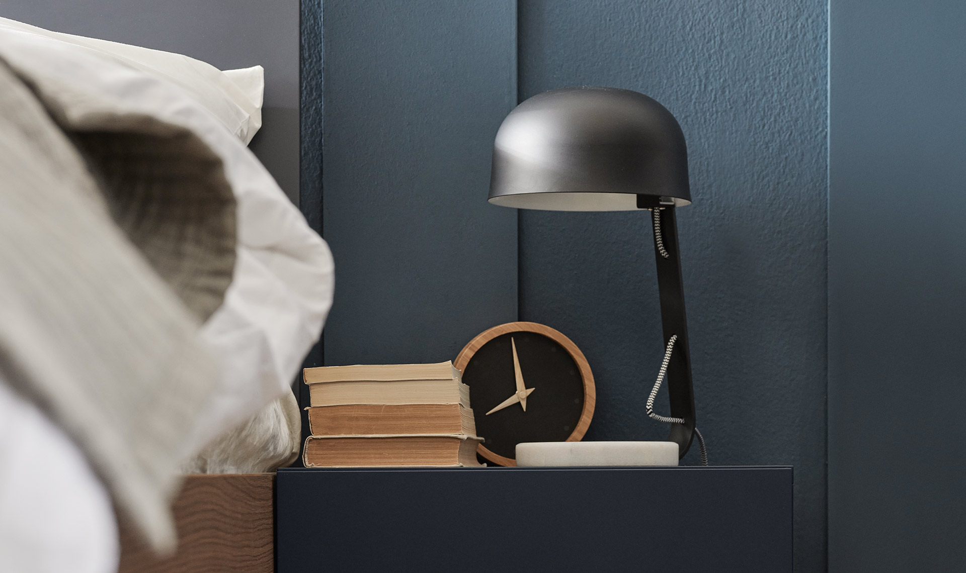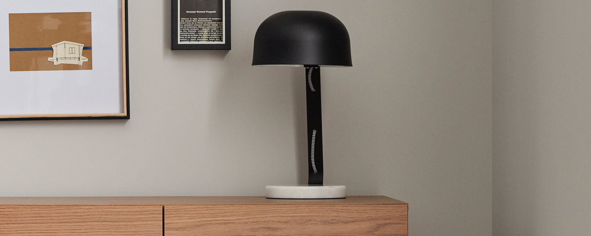 Lampa COMPAN wyróżnia się podstawą wykonaną z jasnego marmuru, co gwarantuje dużą stabilność oprawy.