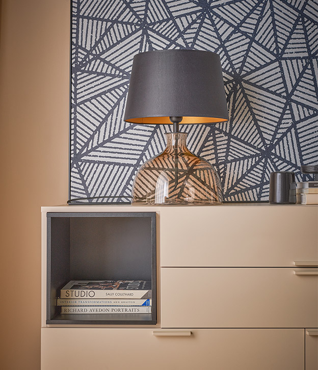 HAGA to jedna z wielu lamp komodowych w naszej ofercie ze szklaną podstawą.