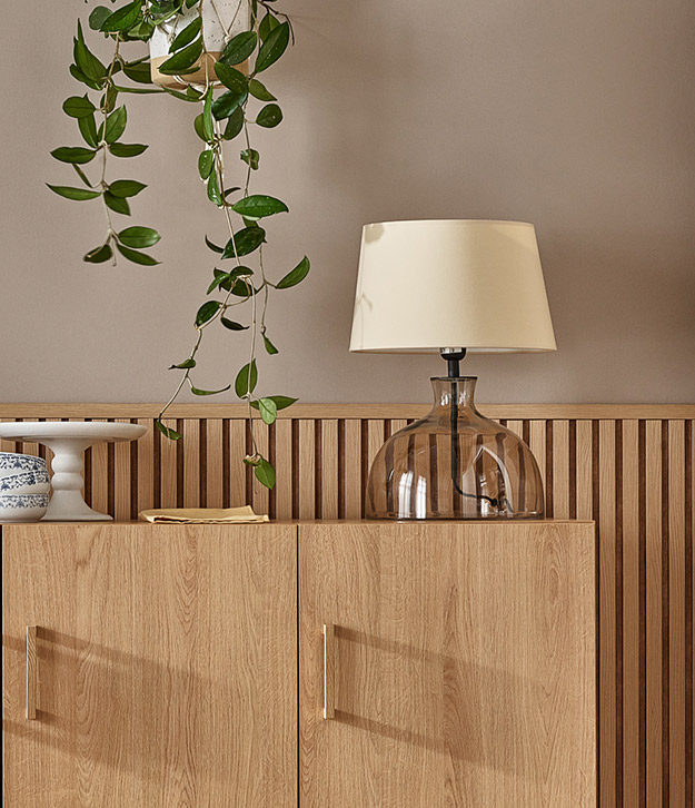 HAGA to jedna z wielu lamp komodowych w naszej ofercie ze szklaną podstawą.