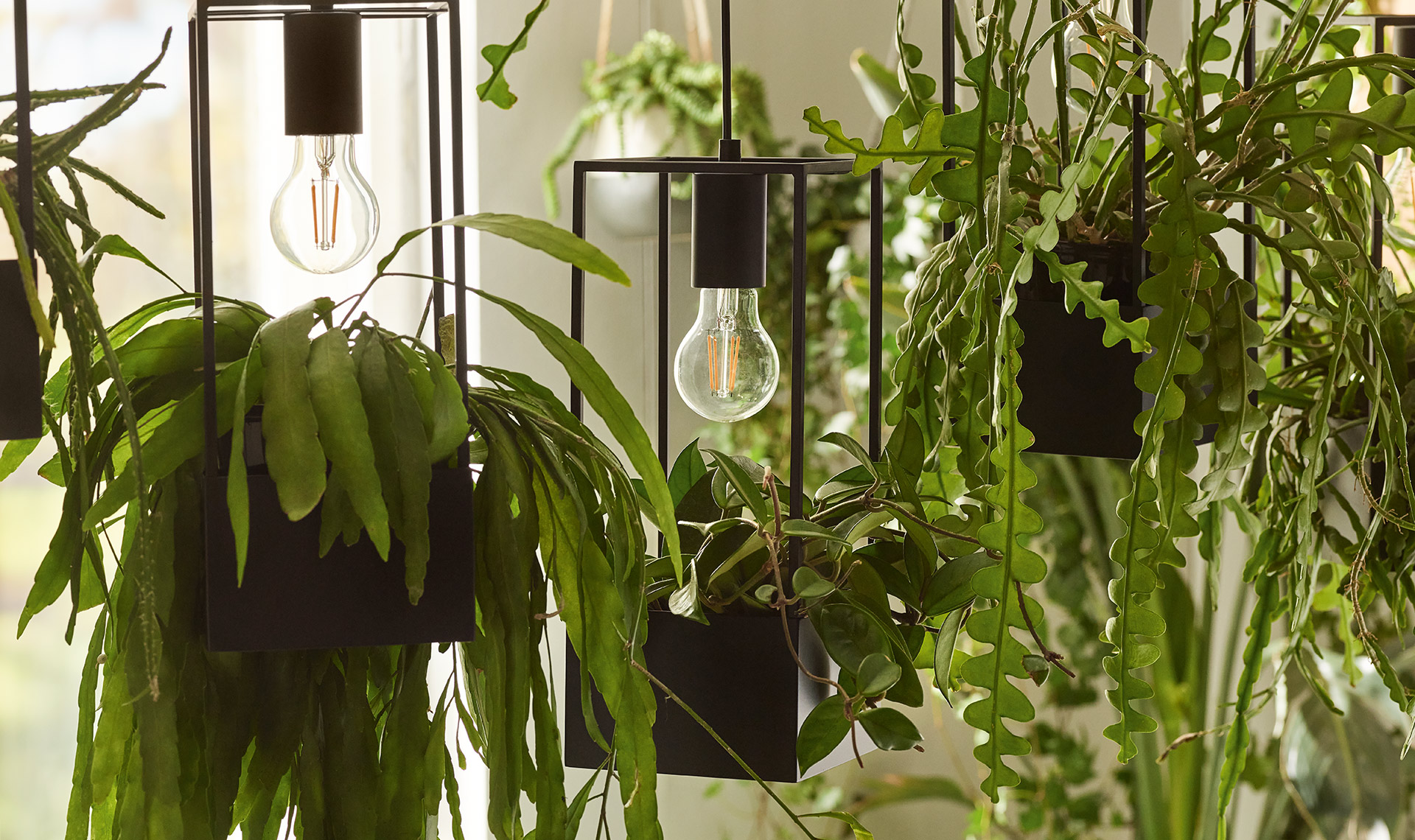 Lampę Lank można wykorzystać do stworzenia wiszącego kwietnika.