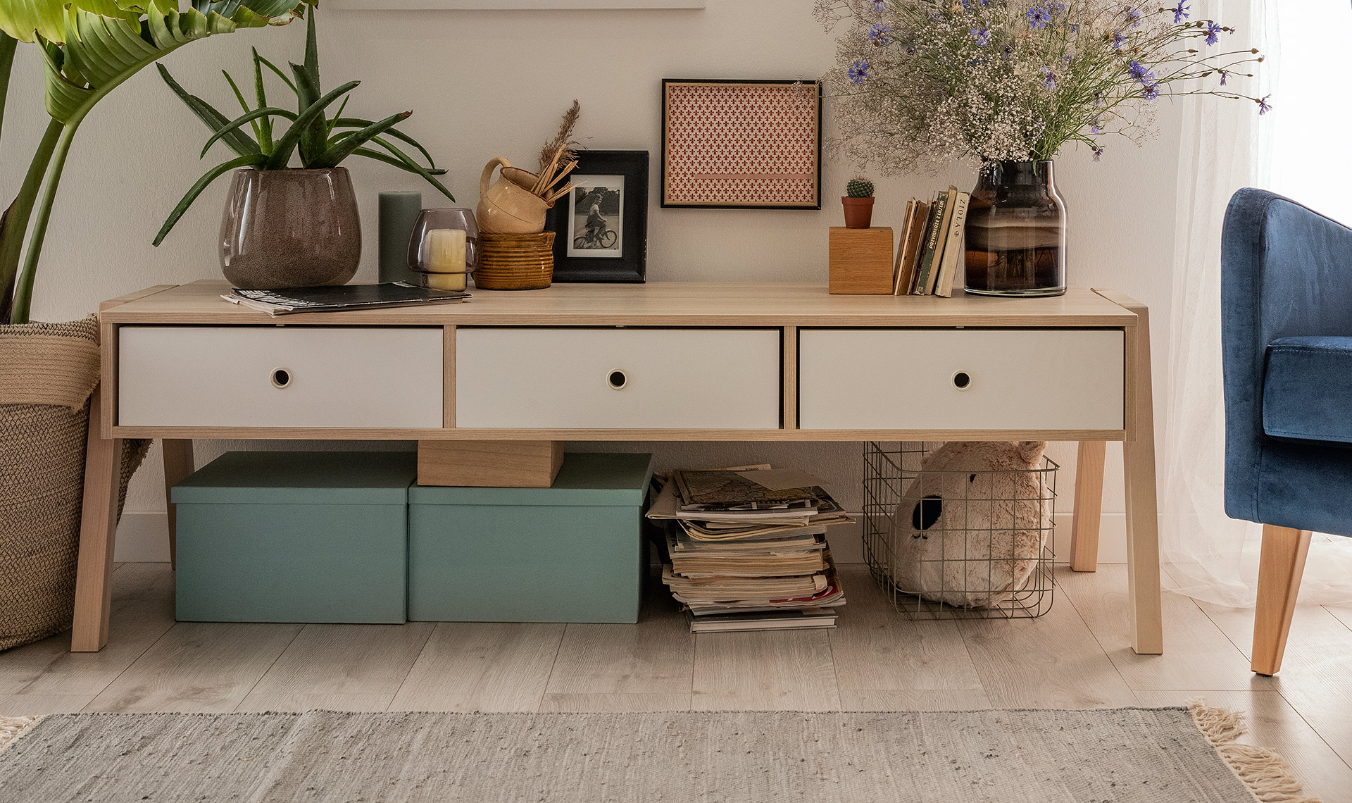 Ławka z serii Spot zapewnia miejsce do siedzenia i przechowywania. W zestawie znajdują się 3 dwustronne szuflady do umieszczenia w wybranych wnękach. Mebel sprawdzi się w przedpokoju, jadalni czy salonie.