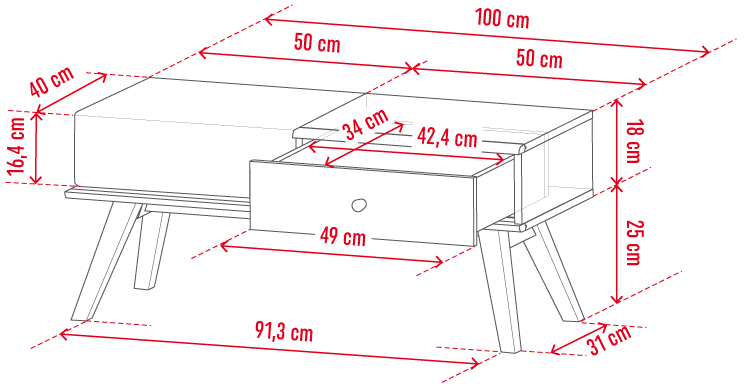 szerokość: 100 cmwysokość: 43 cmgłębokość: 40 cm
