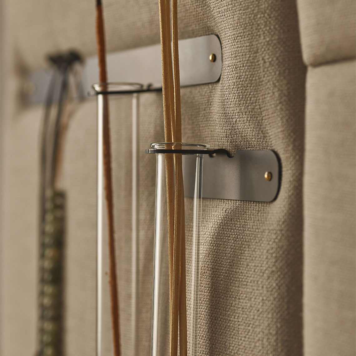 - Na każdej z listew znajduje się uchwyt do przymocowania fiolki. Przejrzyste probówki doskonale sprawdzają się jako niewielkie wazony na cięte i suszone kwiaty – to prosty sposób na nadanie otoczeniu naturalnego charakteru.