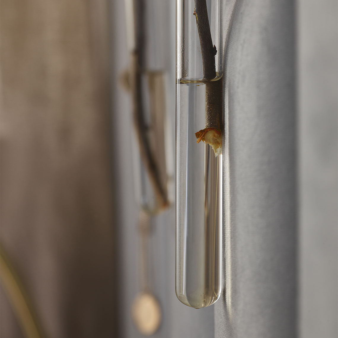 Listwy zostały wykonane ze stali pokrytej matowym lakierem akrylowym. Są trwałe odporne na uszkodzenia. Fiolki powstały z bezbarwnego szkła sodowego, stosowanego do produkcji naczyń domowego użytku. Z łatwością utrzymasz je w czystości – możesz umyć je ręcznie lub włożyć do zmywarki. Gwoździe z łbem kulistym wykonano z mosiądzowanej stali.