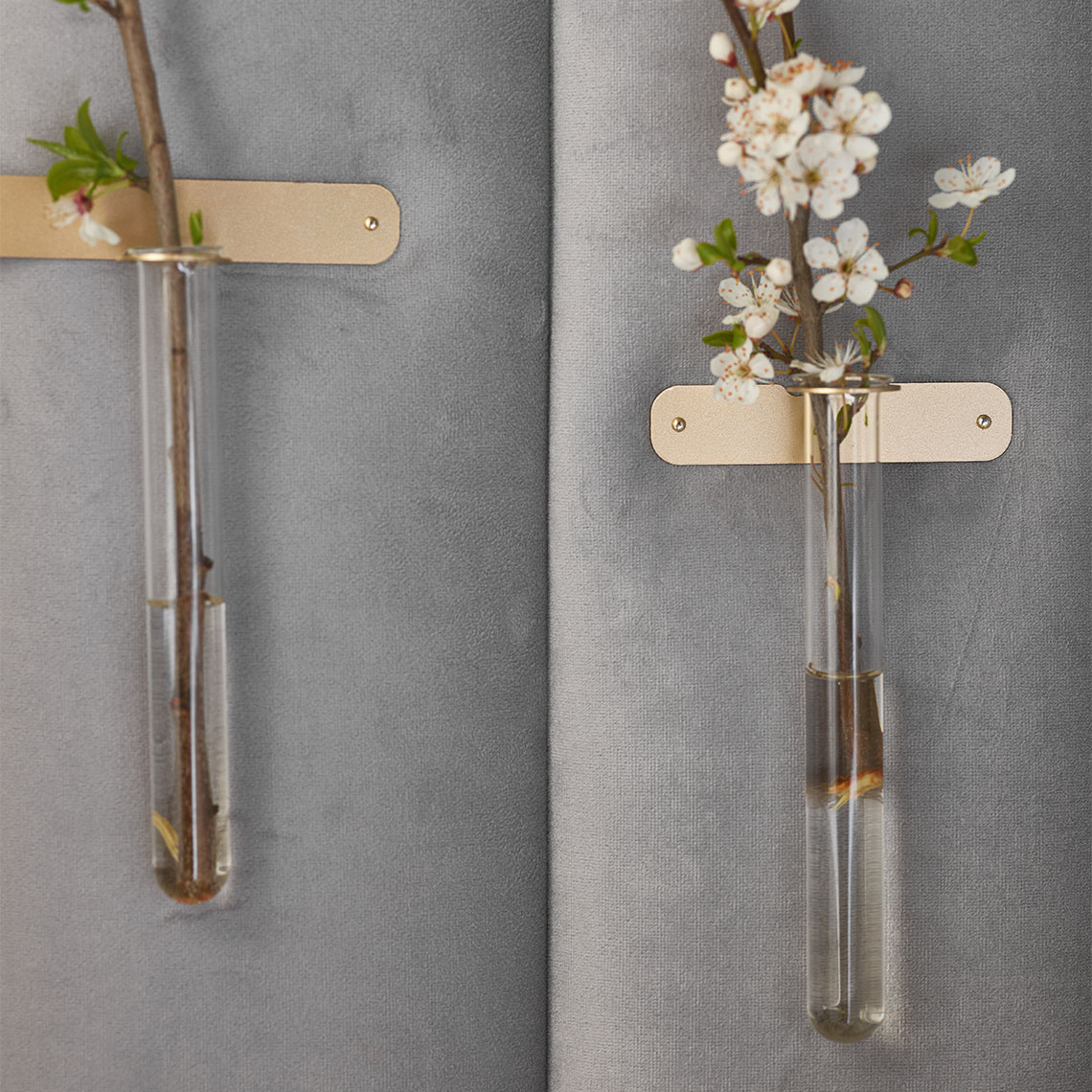 - Obie listwy zawierają uchwyty na fiolki. Możesz do nich nalać odrobinę wody i umieścić w nich żywe kwiaty lub wykorzystać je jako naczynia na suszone gałązki.