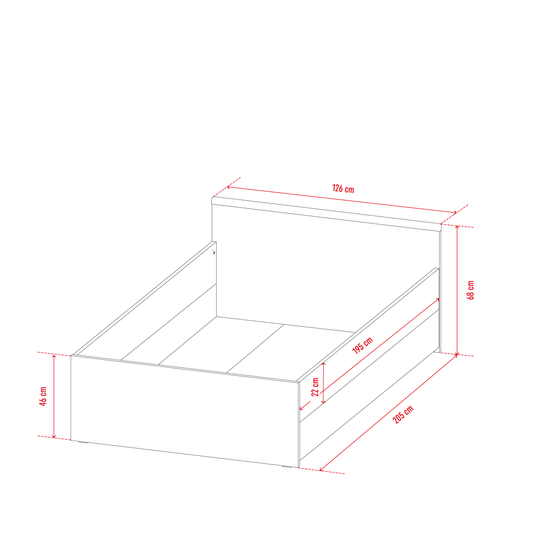 - Rama łóżka: laminowana płyta wiórowa o grubości 22 mm.