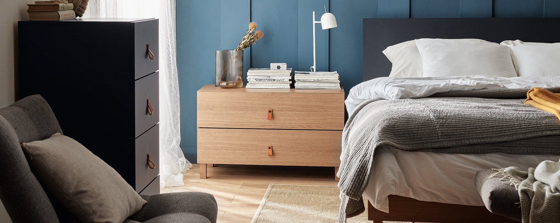 - Sprawdź, jak łóżko zaprezentuje się w połączeniu ze stolikiem nocnym Creative.