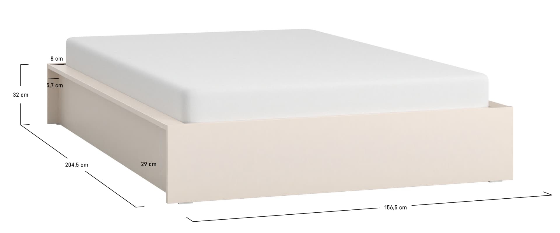 szerokość: 156.4 cmwysokość: 32.1 cmgłębokość: 204.4 cm