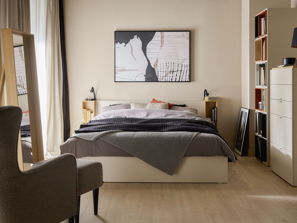 - Łóżko 2-osobowe 4 You Fresh jest dostępne w kolorze piaskowego beżu.
