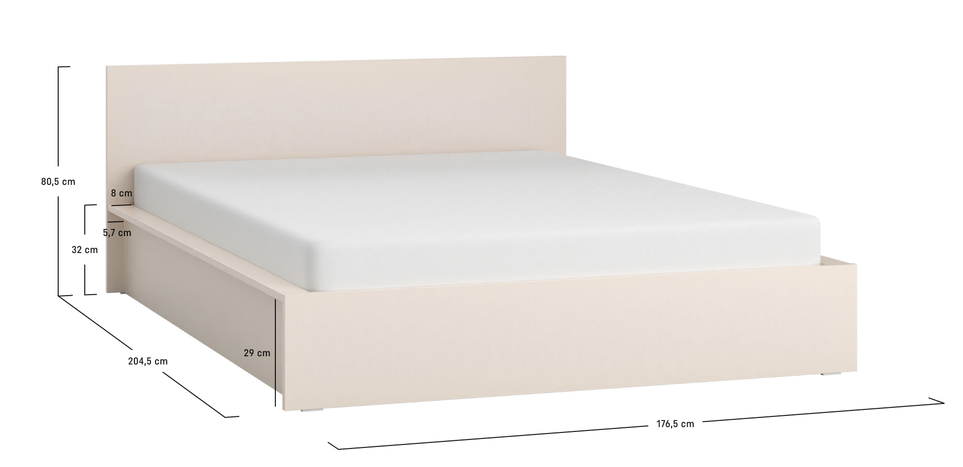 - Do łóżka można wybrać różne typy podłogi: montowane na stałe i uchylne stelaże, które zapewniają dodatkową przestrzeń do przechowywania pod materacem o powierzchni 200 x 160,2 x 20 cm.