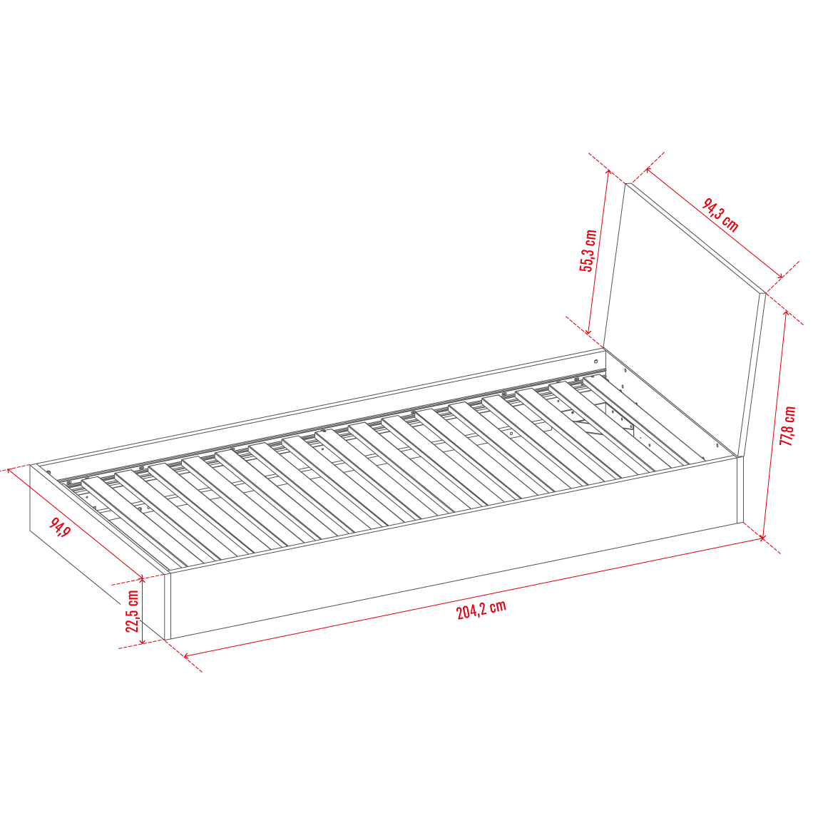 - Jeśli zdecydujesz się na stelaż podnoszony, pod materacem znajdzie się przepastny pojemnik na Twoje rzeczy o wymiarach 200 x 90,2 x 9,8 cm. Stelaż uchylny można montować z prawej i lewej strony łóżka.