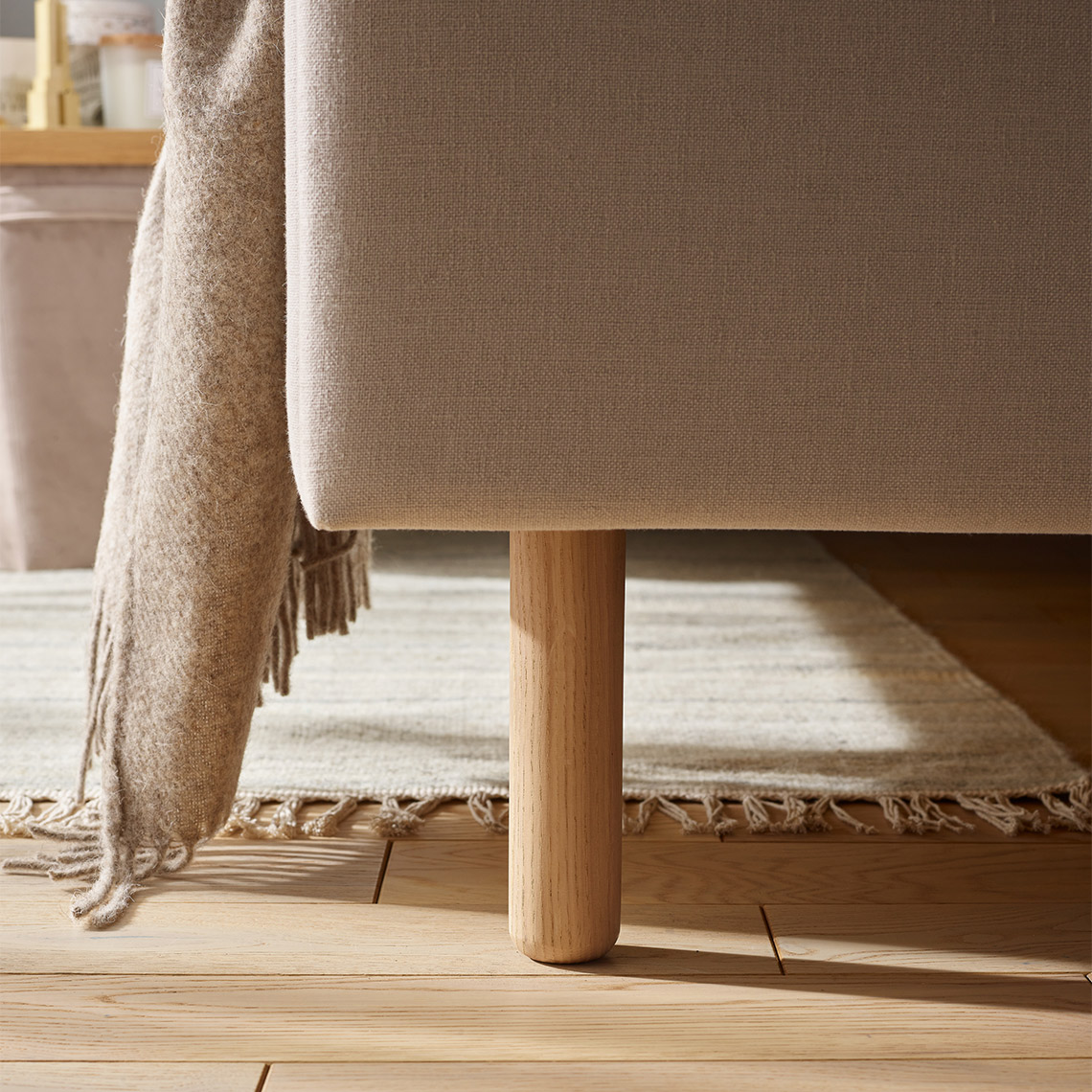 - Wysokie na 18 cm nogi łóżka pozwalają utrzymać czystość w pokoju. Występują w 5 wersjach do wyboru: skośne dąb, skośne jasny dąb i skośne czarne, walec jasny dąb i proste czarne.