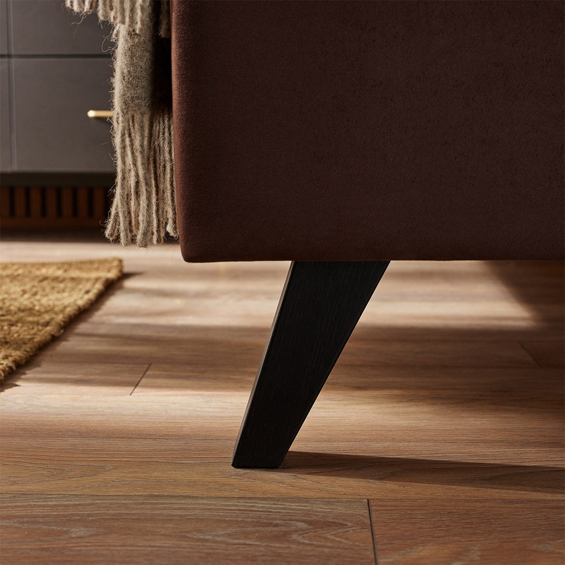 • Personalizacji podlegają również drewniane nogi łóżka. Wysokie na 18 cm, ułatwiają sprzątanie w pokoju. Są dostępne w 5 wersjach do wyboru: skośne naturalny dąb, skośne jasny dąb, skośne czarne, czarne proste i owalne w odcieniu jasny dąb.